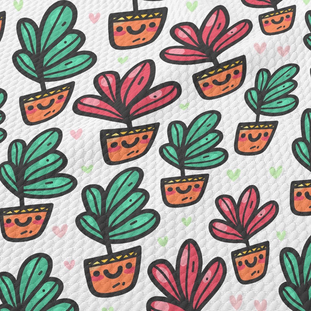 Lively Smiling Potted Plant Birdseye Piqué