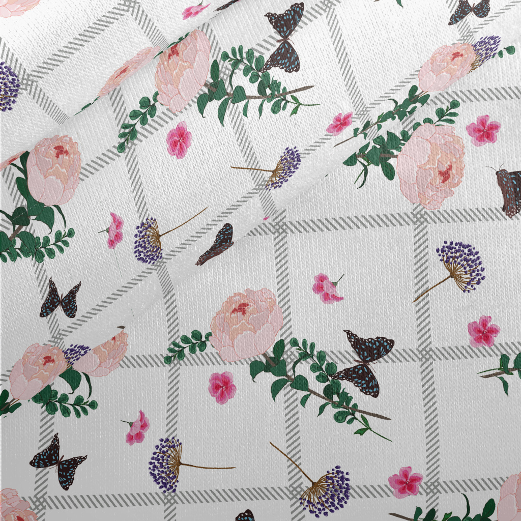 Beautiful Flowers And Butterfl Jersey Backed Fleece