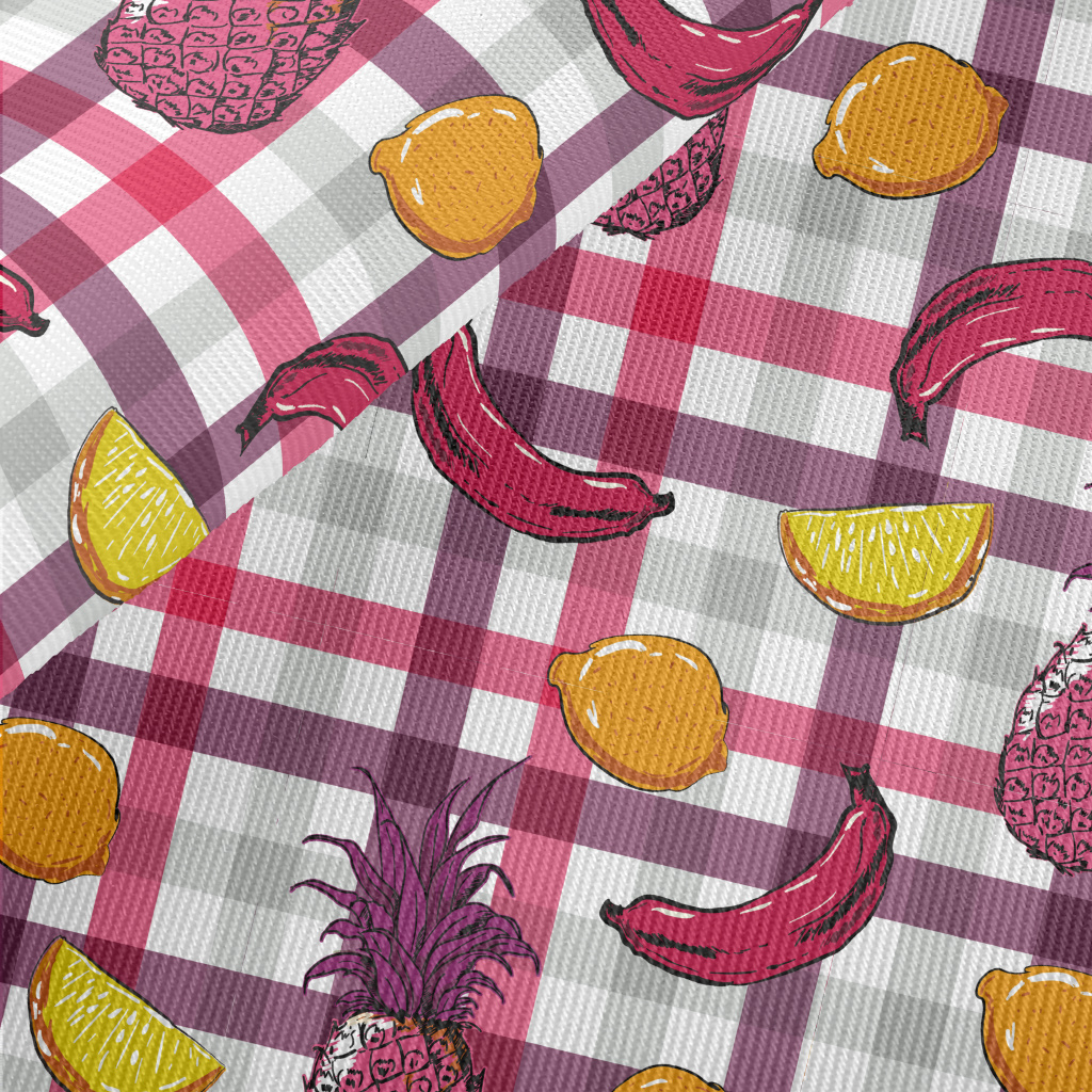 Checkered Various Fruits Midweight Cotton Poplin