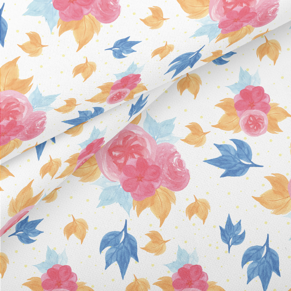 Smudged Flowers And Maple Leav Lightweight Cotton Poplin