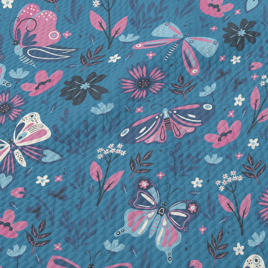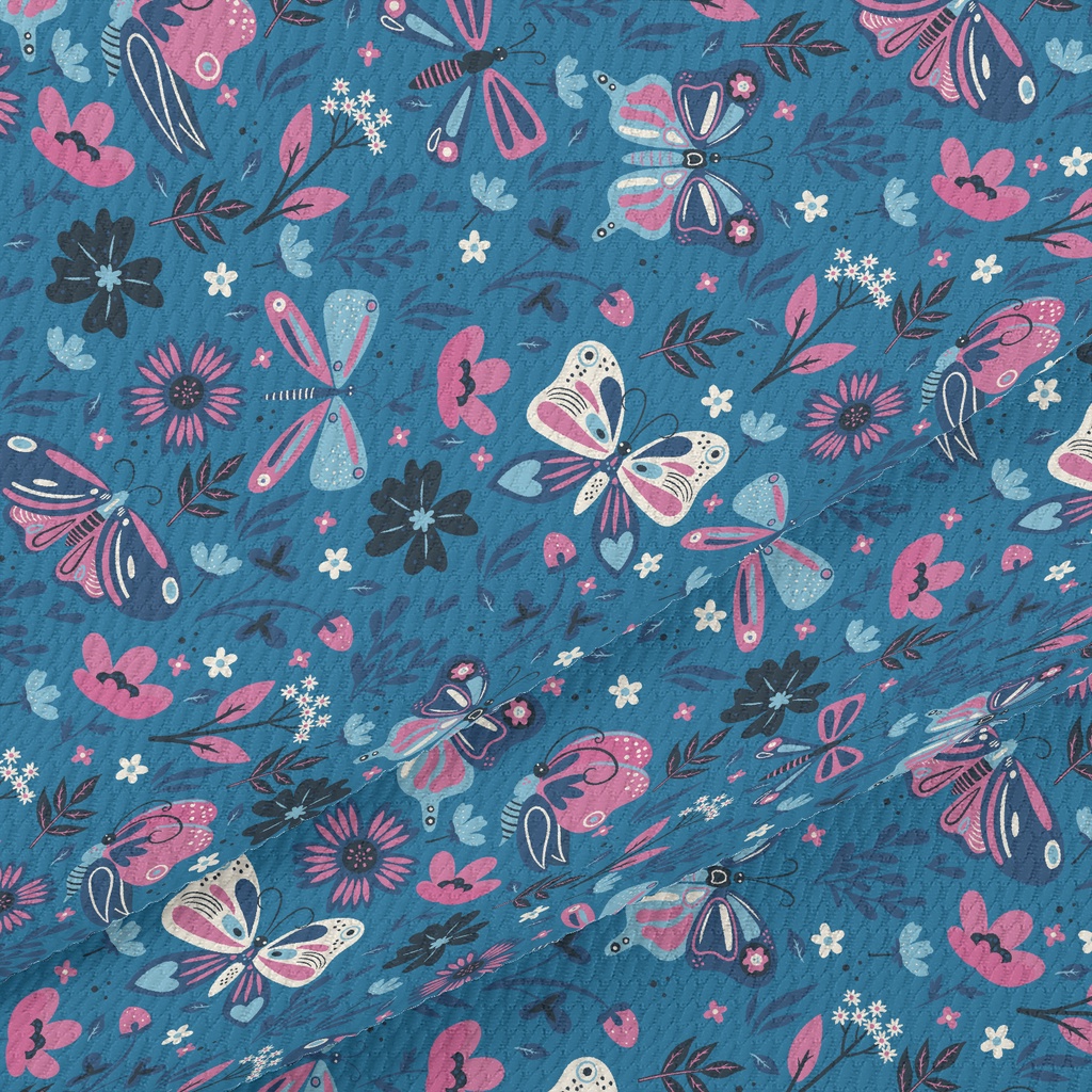 Colorful Flying Butterflies Birdseye Piqué