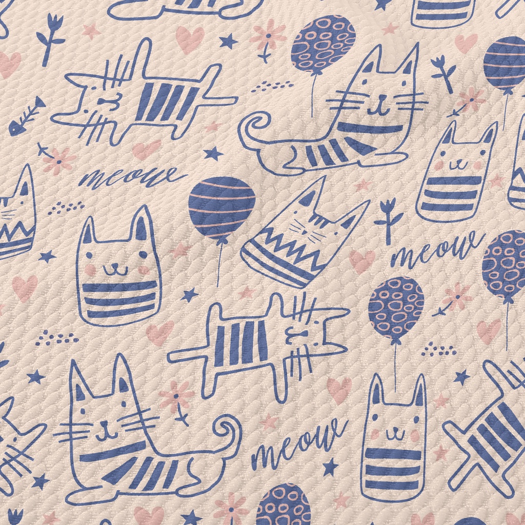 Simple Line Cute Cat Birdseye Piqué