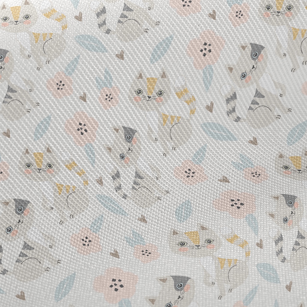 Gentle Cat And Little Flower Twill