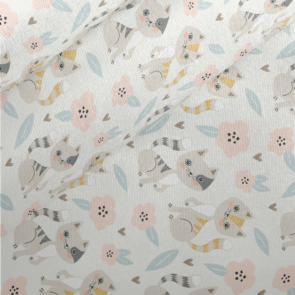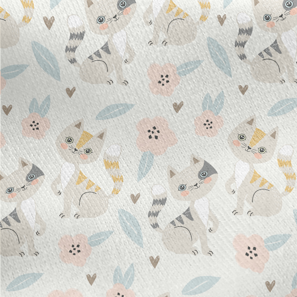 Gentle Cat And Little Flower Jersey Backed Fleece