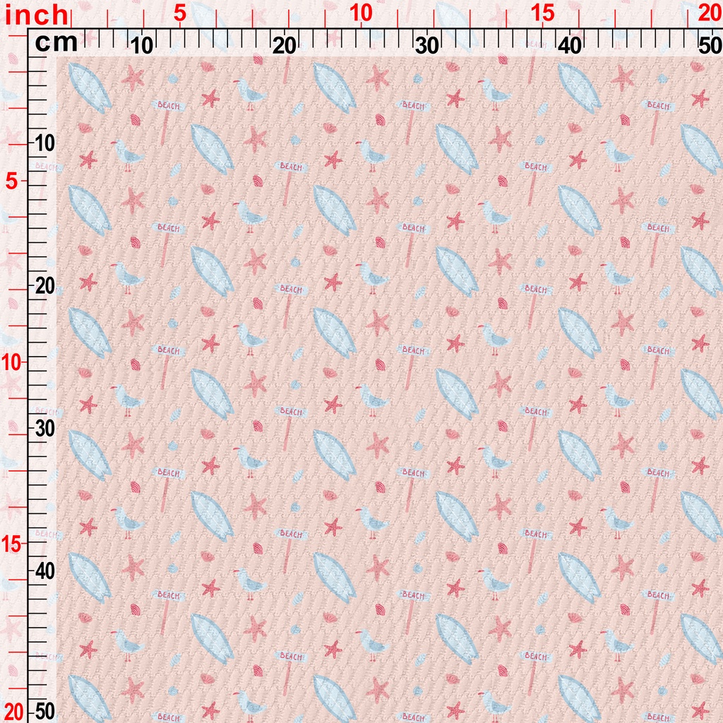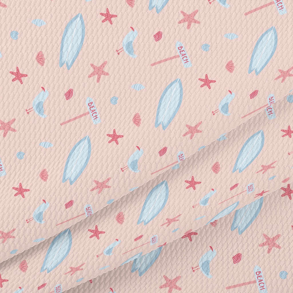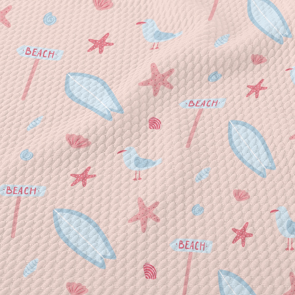 Pink Beach Starfish Seagull Birdseye Piqué