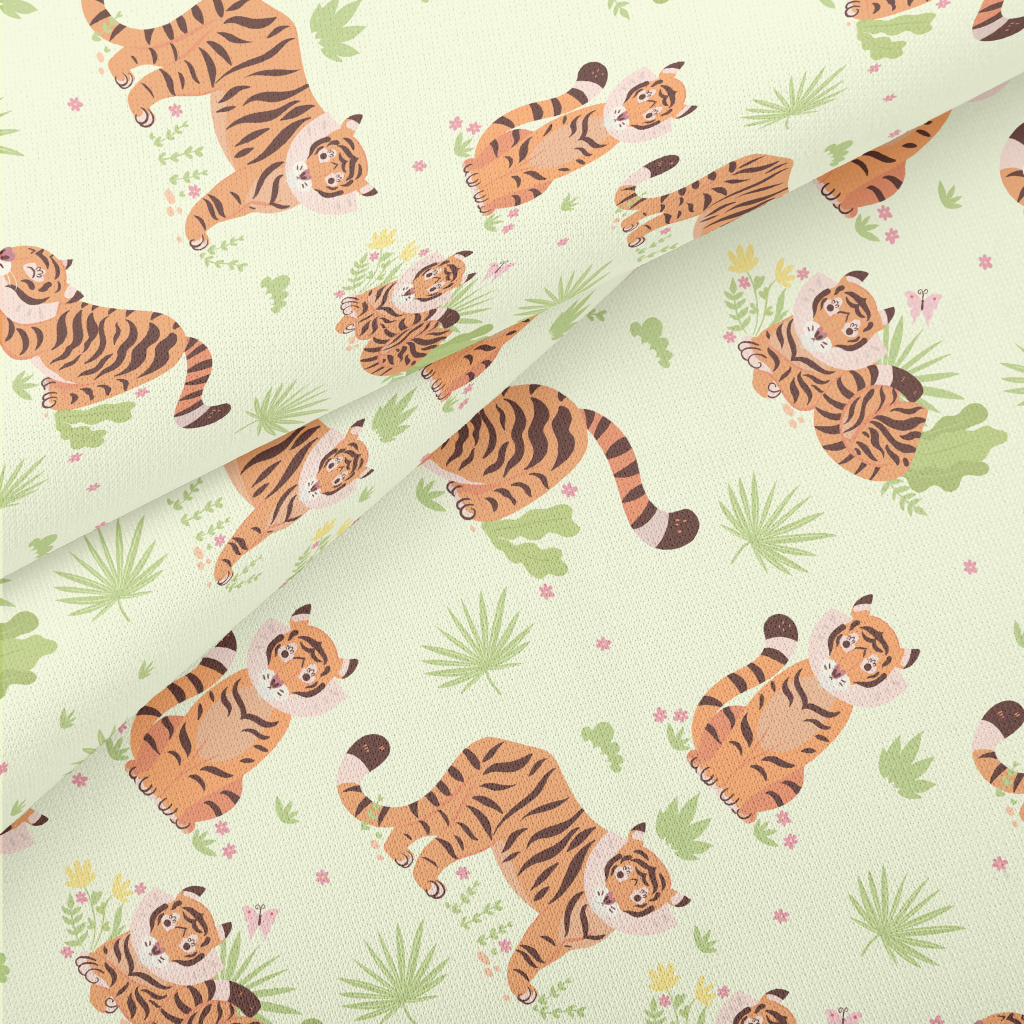 Tiger Playing In The Grassland Lightweight Cotton Poplin