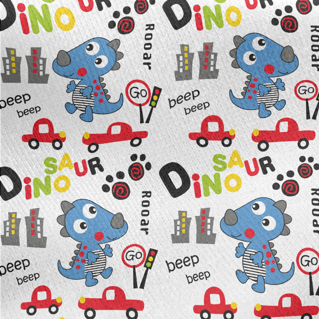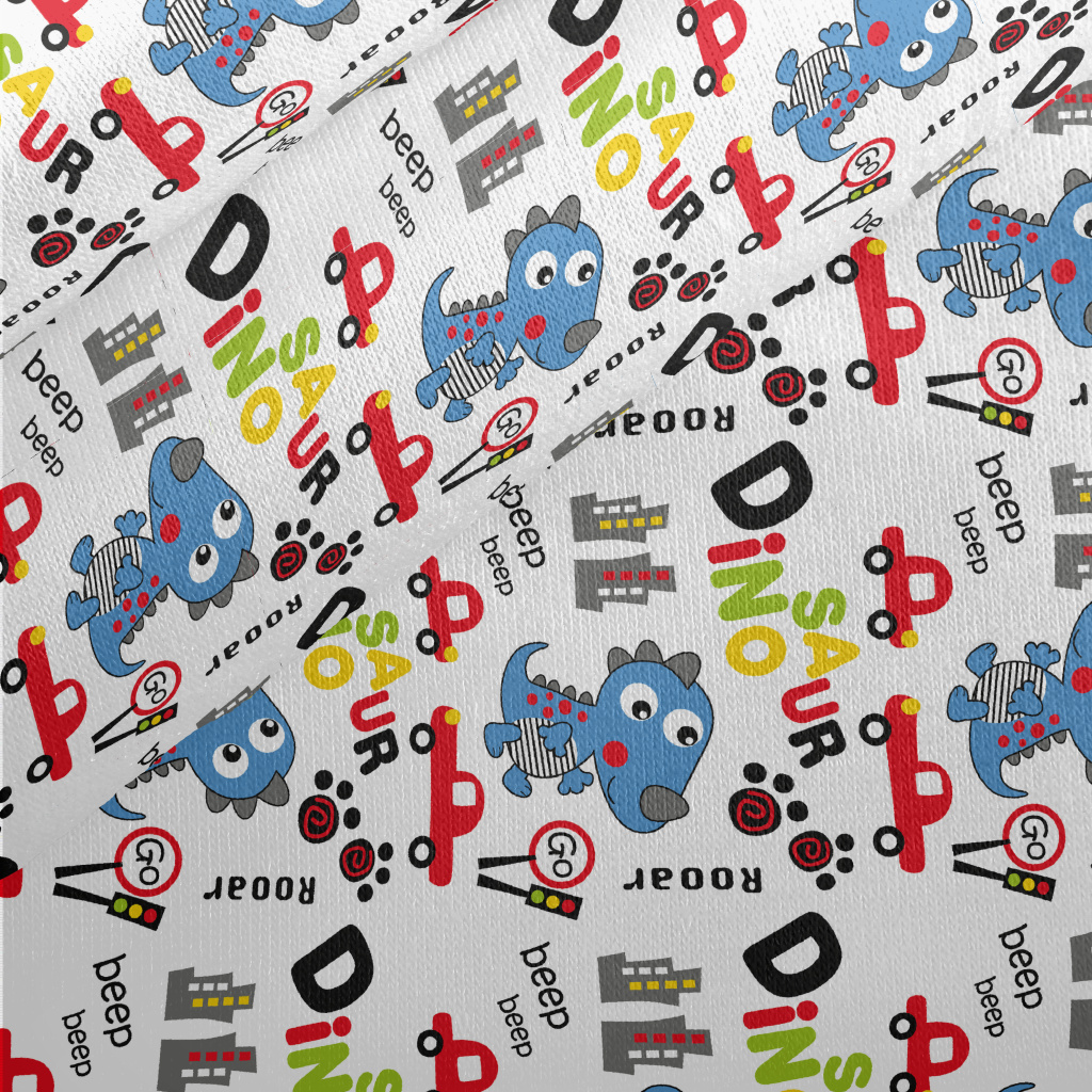 Cute Dinosaurs Causing Havoc I Jersey Backed Fleece