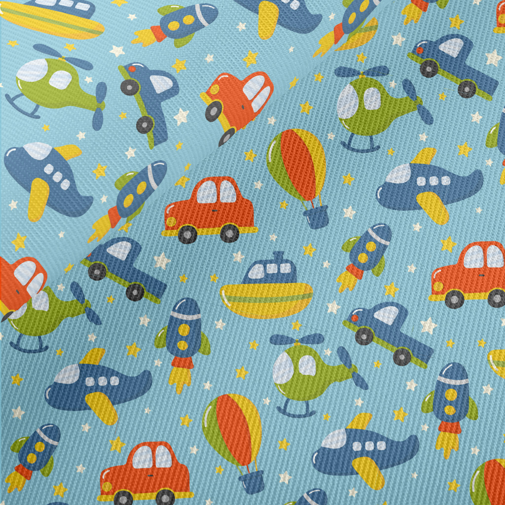 Cartoon Funny Vehicles Midweight Cotton Poplin