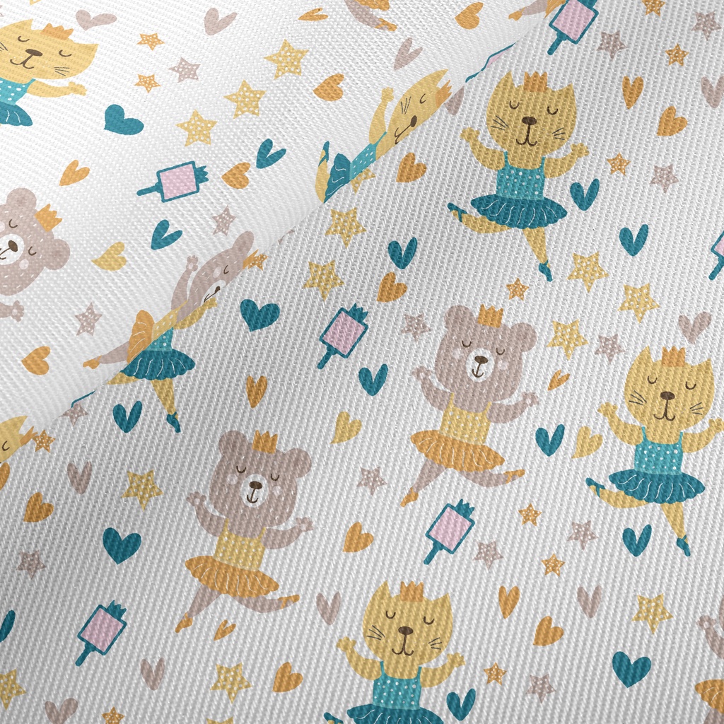 Bear And Cat Dancing Ballet Twill