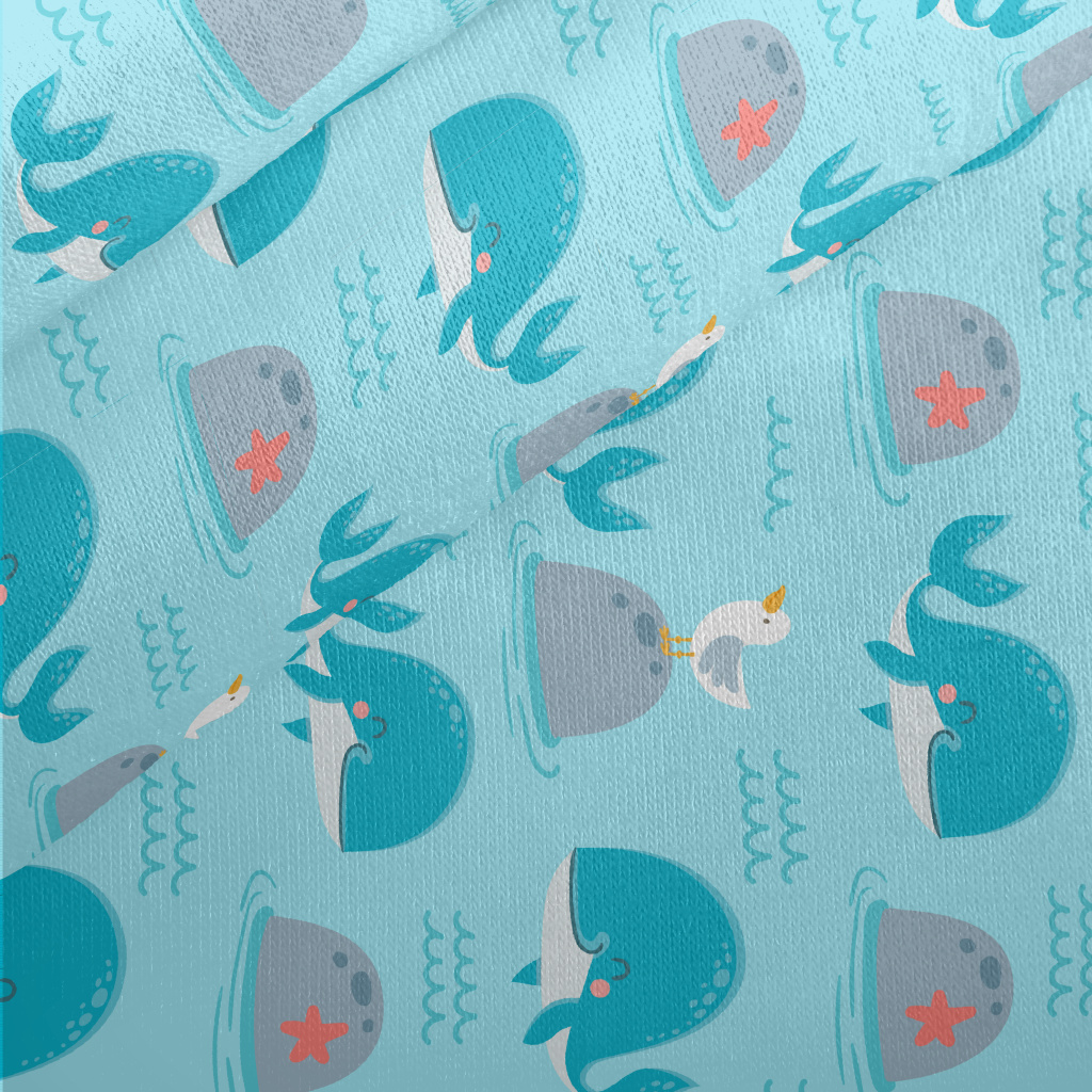 Lively Whale And Seagull Jersey Backed Fleece