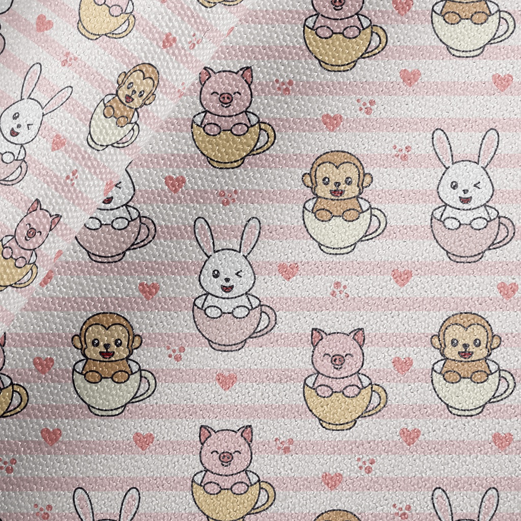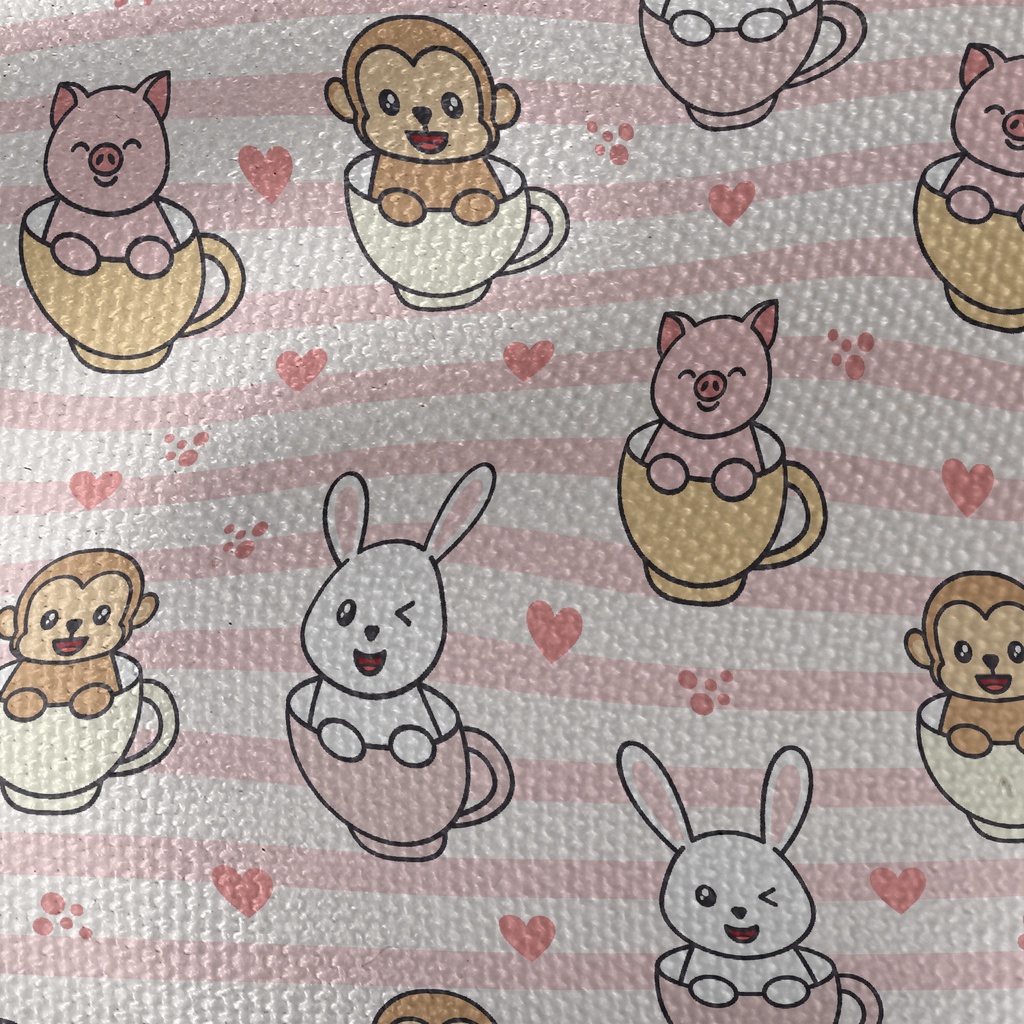 Monkey Rabbit Piggy In Cup Waterproof Canvas