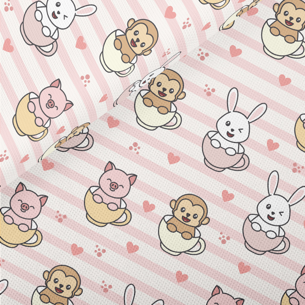 Monkey Rabbit Piggy In Cup Piqué