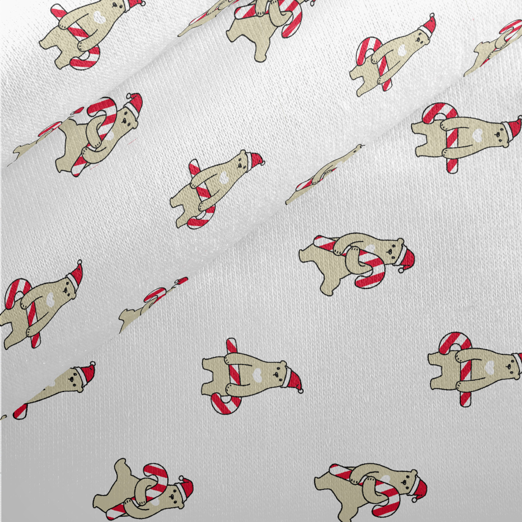 Brown Bear Holding Christmas C Jersey Backed Fleece