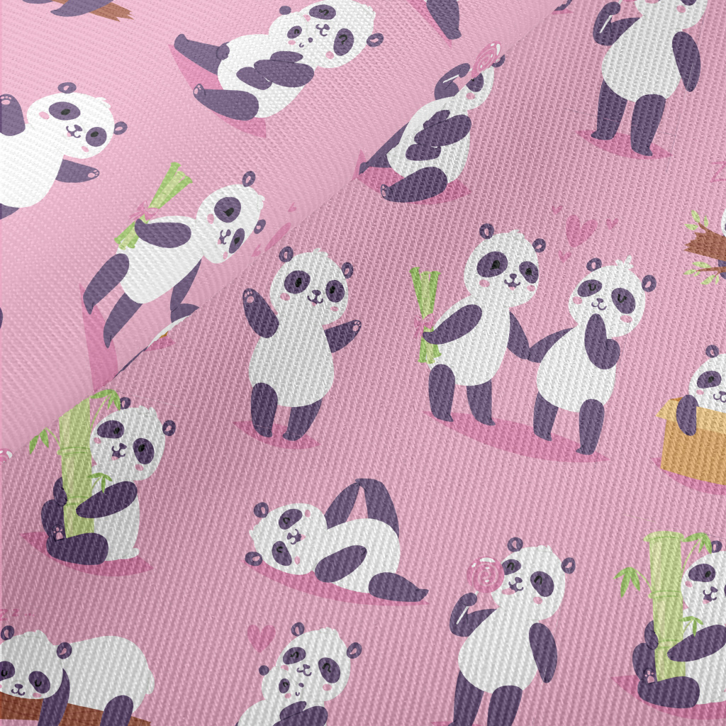 Loving Cat And Panda Family Midweight Cotton Poplin