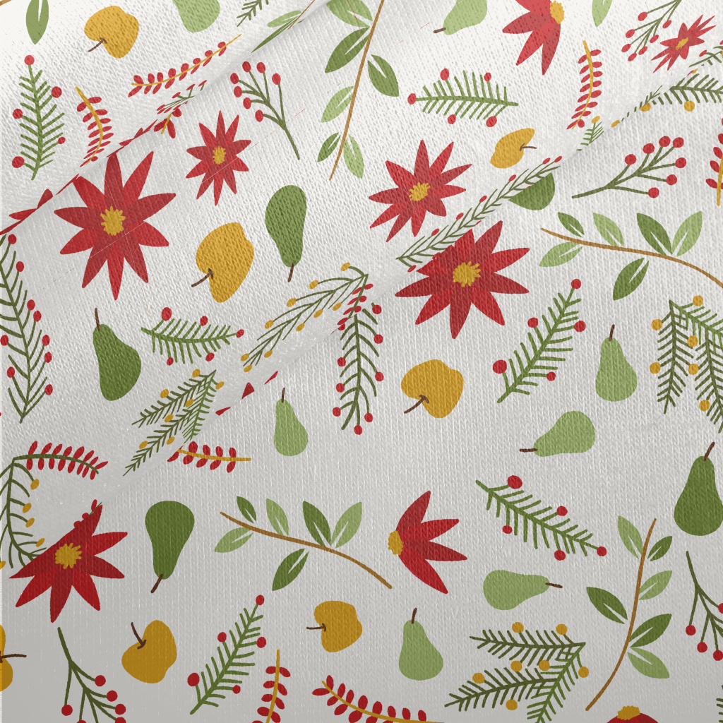 Big Red Flower And Apple Jersey Backed Fleece