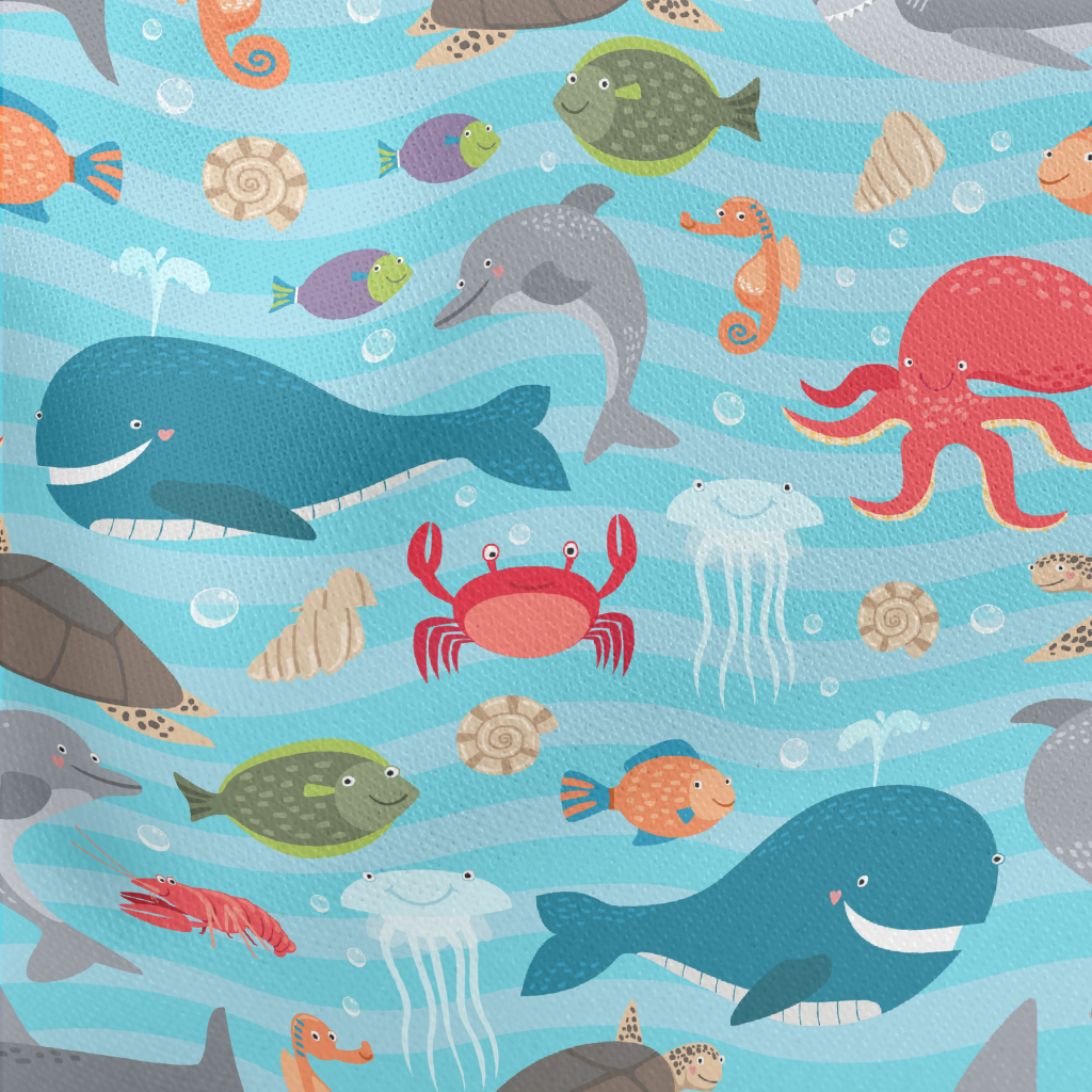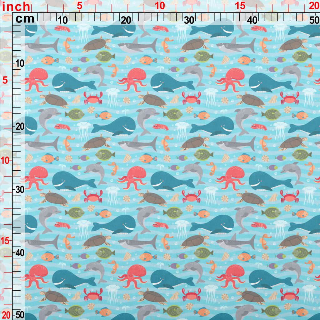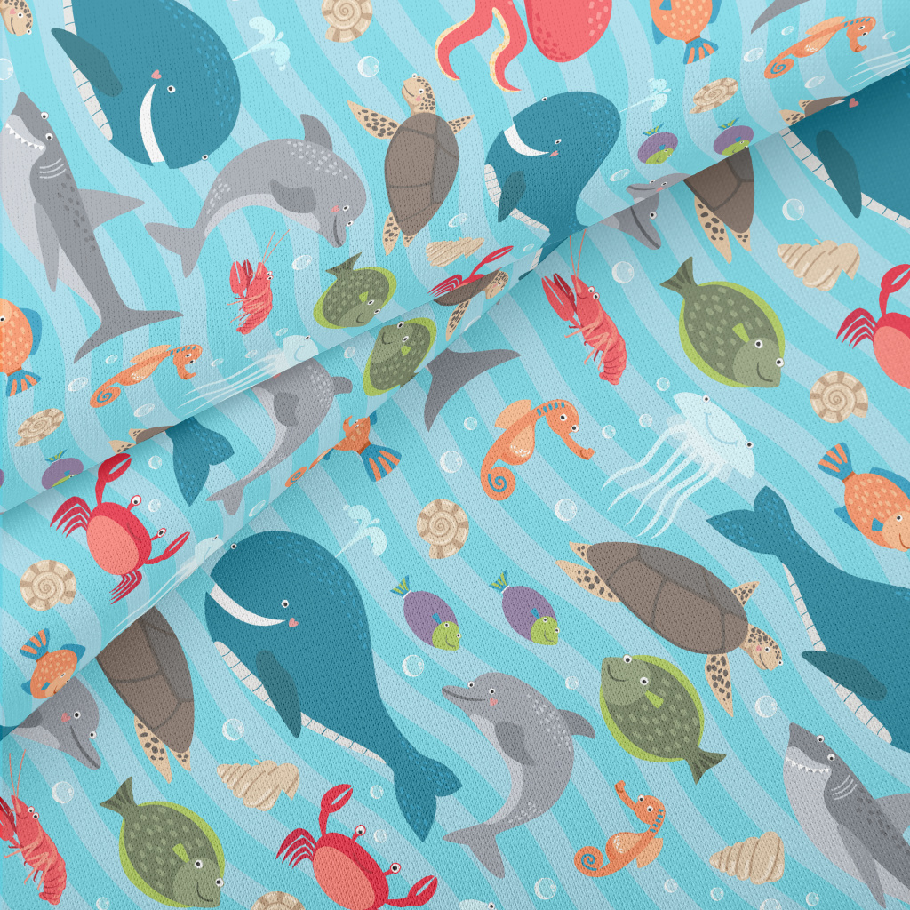 Cute Sea Creatures Lightweight Cotton Poplin