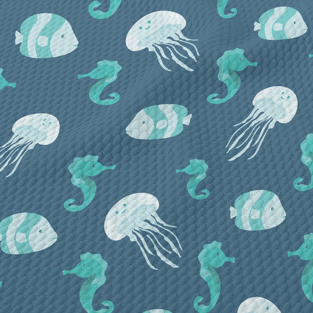 Cute Jellyfish Seahorse Fish Birdseye Piqué