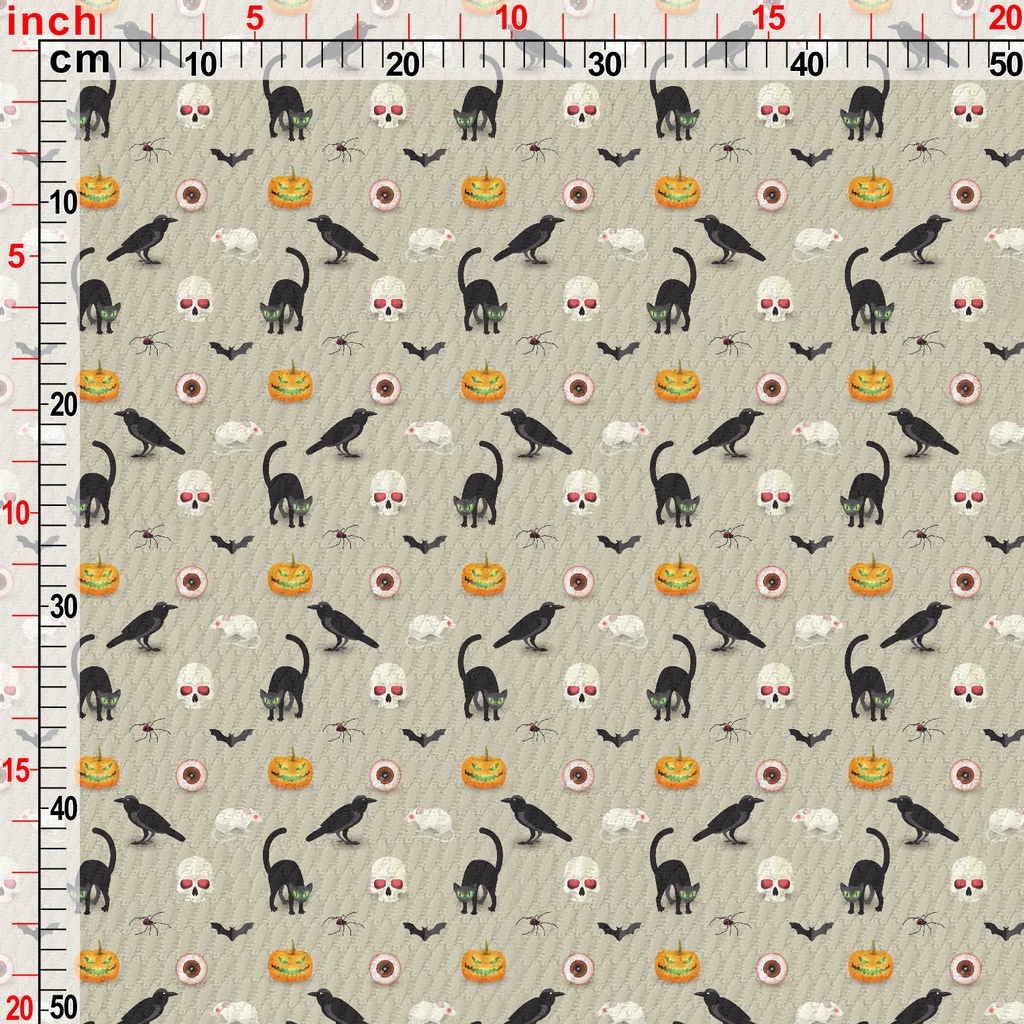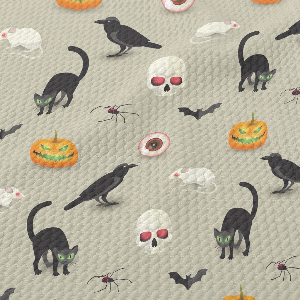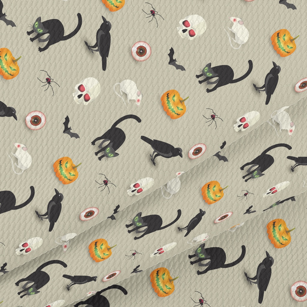 Evil Pumpkin Black Cat Mouse Birdseye Piqué