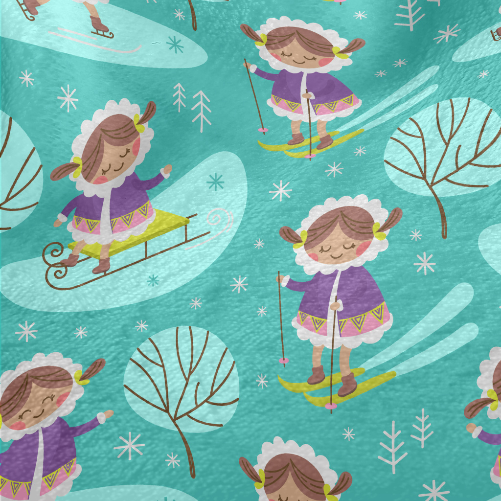 Cute Girl Skating And Skiing Minky