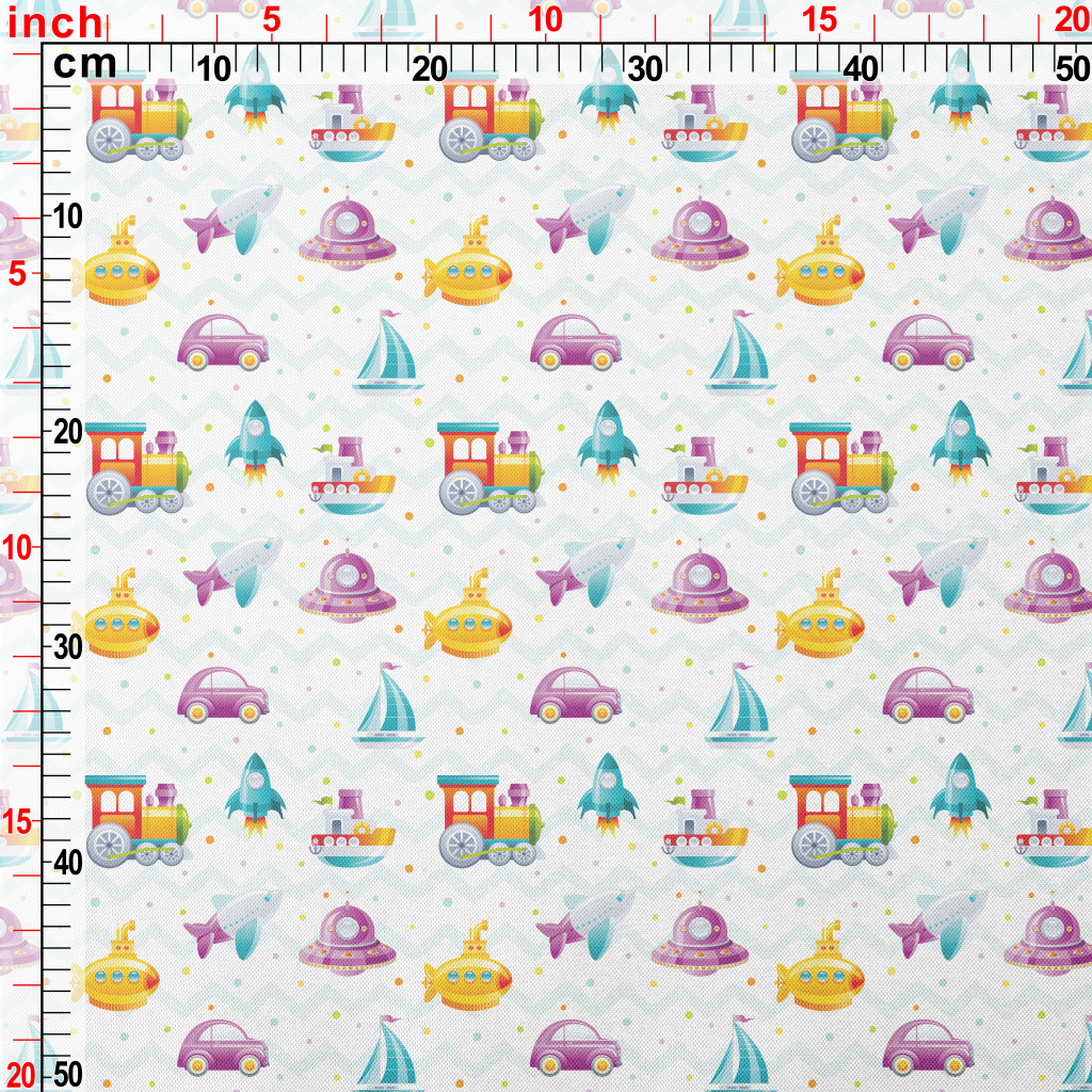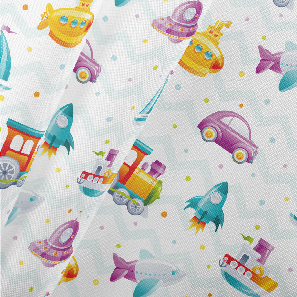 Cartoon Train Rocket Submarine Pongee