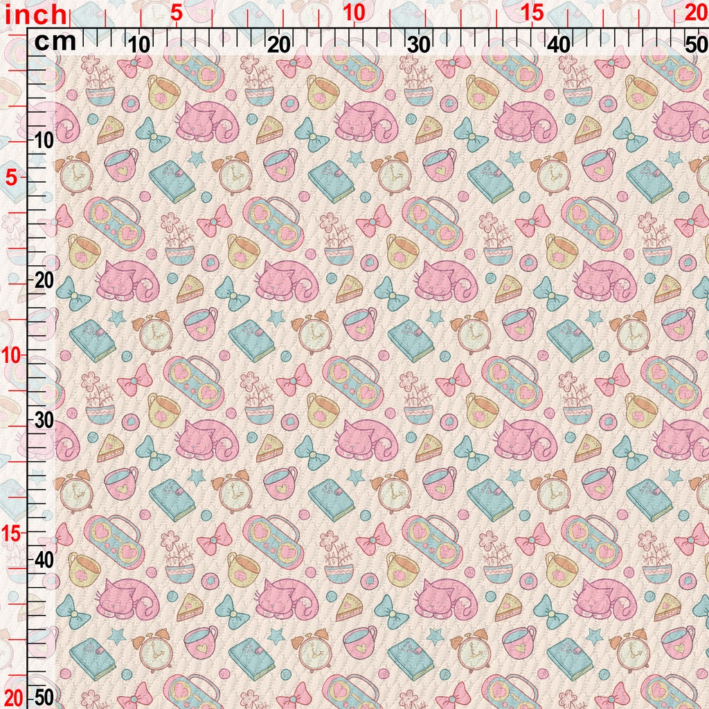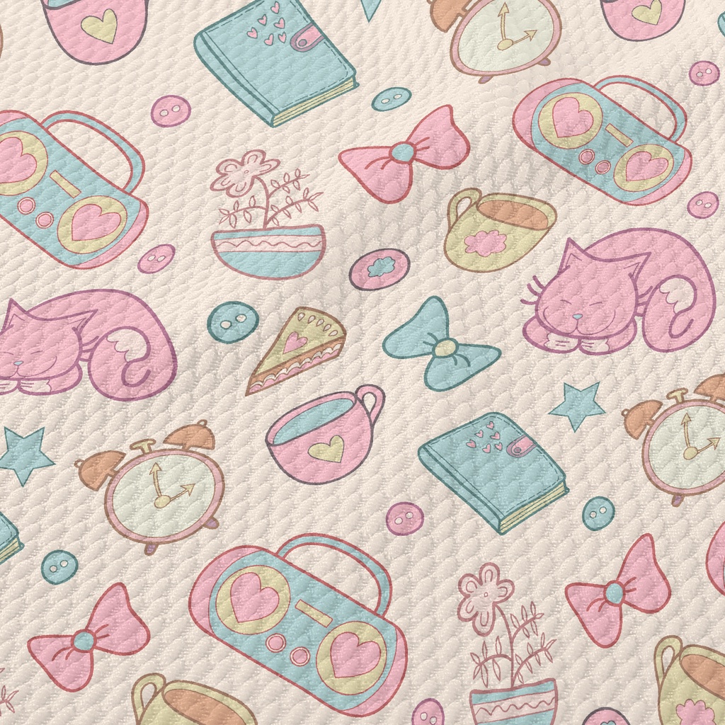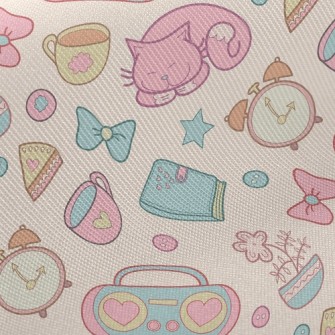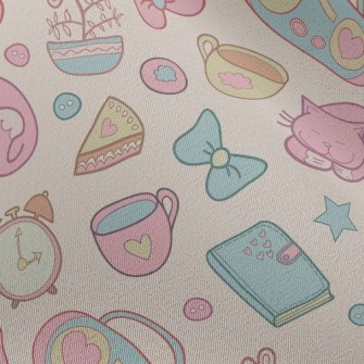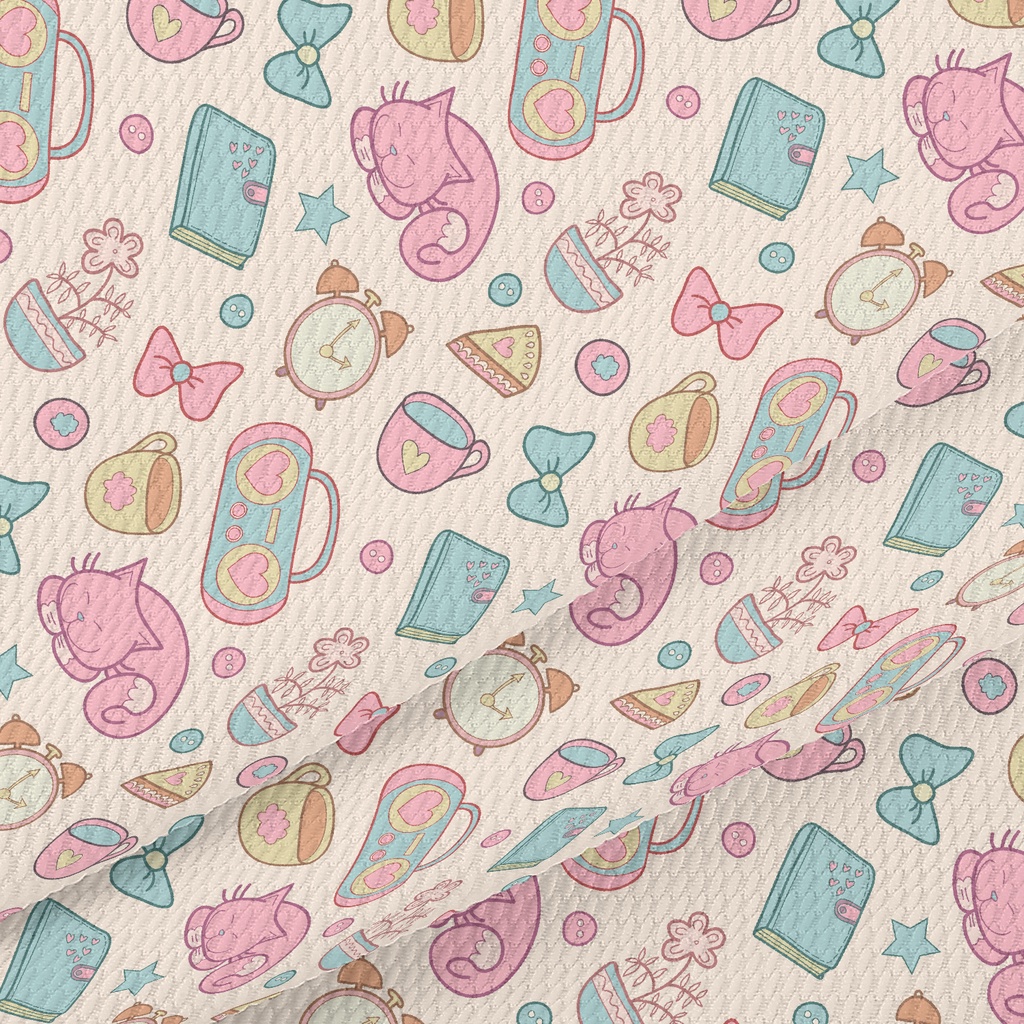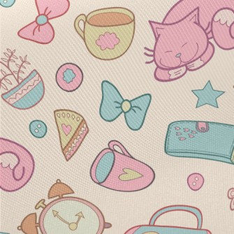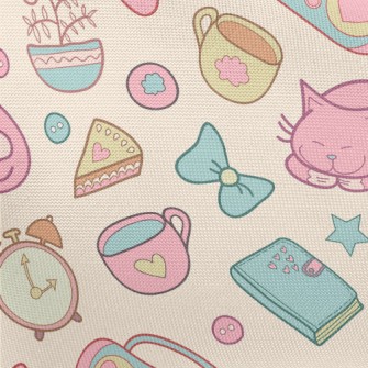 Elegant Afternoon Tea Cute Cat Birdseye Piqué