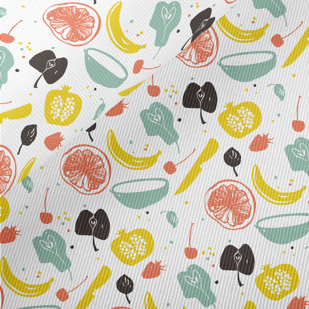 Line Art Fruit Midweight Cotton Poplin