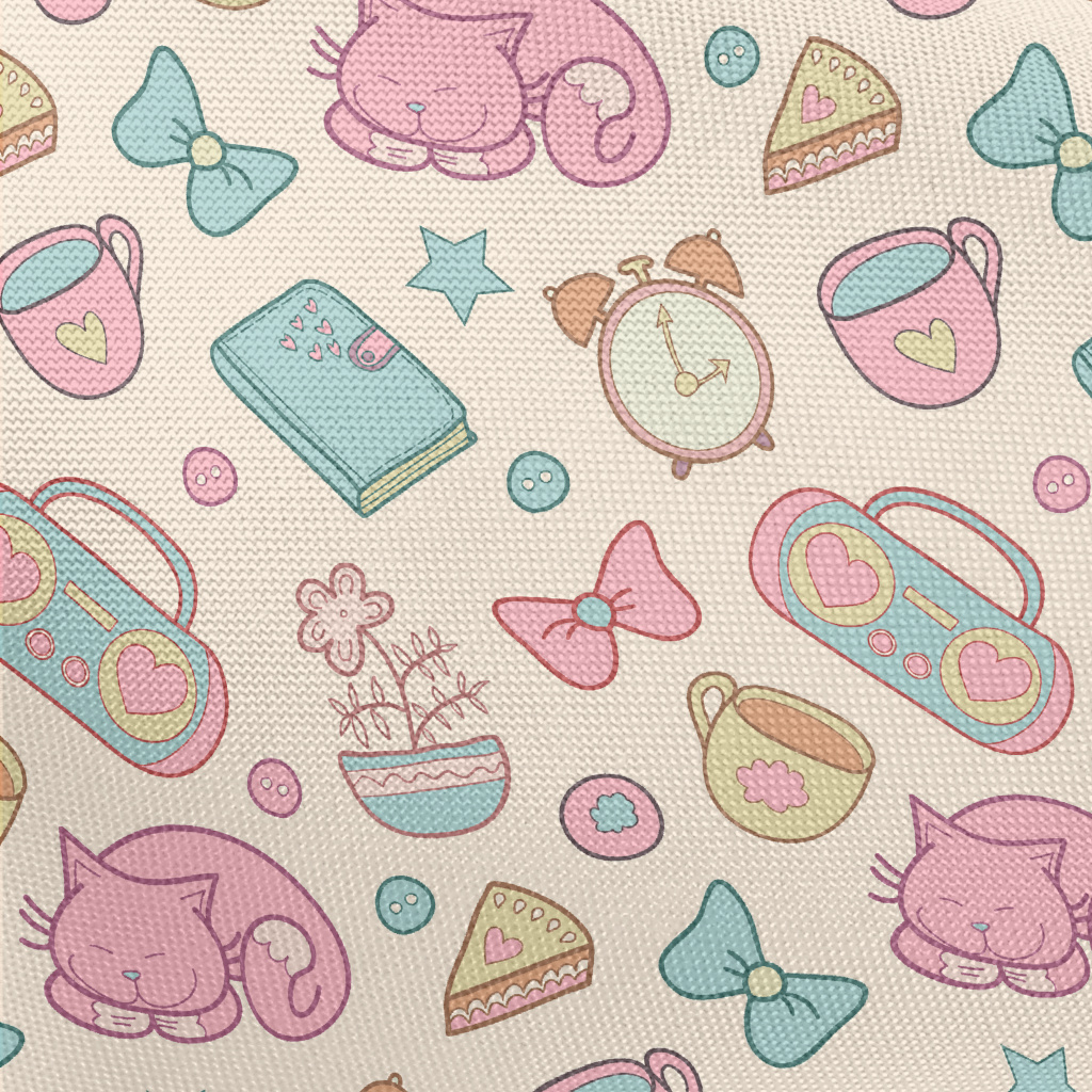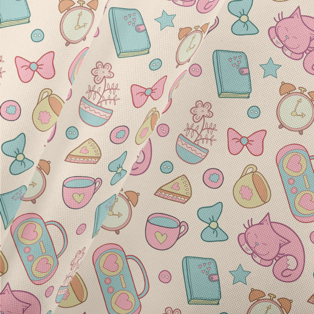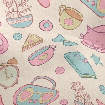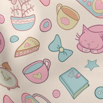 Elegant Afternoon Tea Cute Cat Pongee