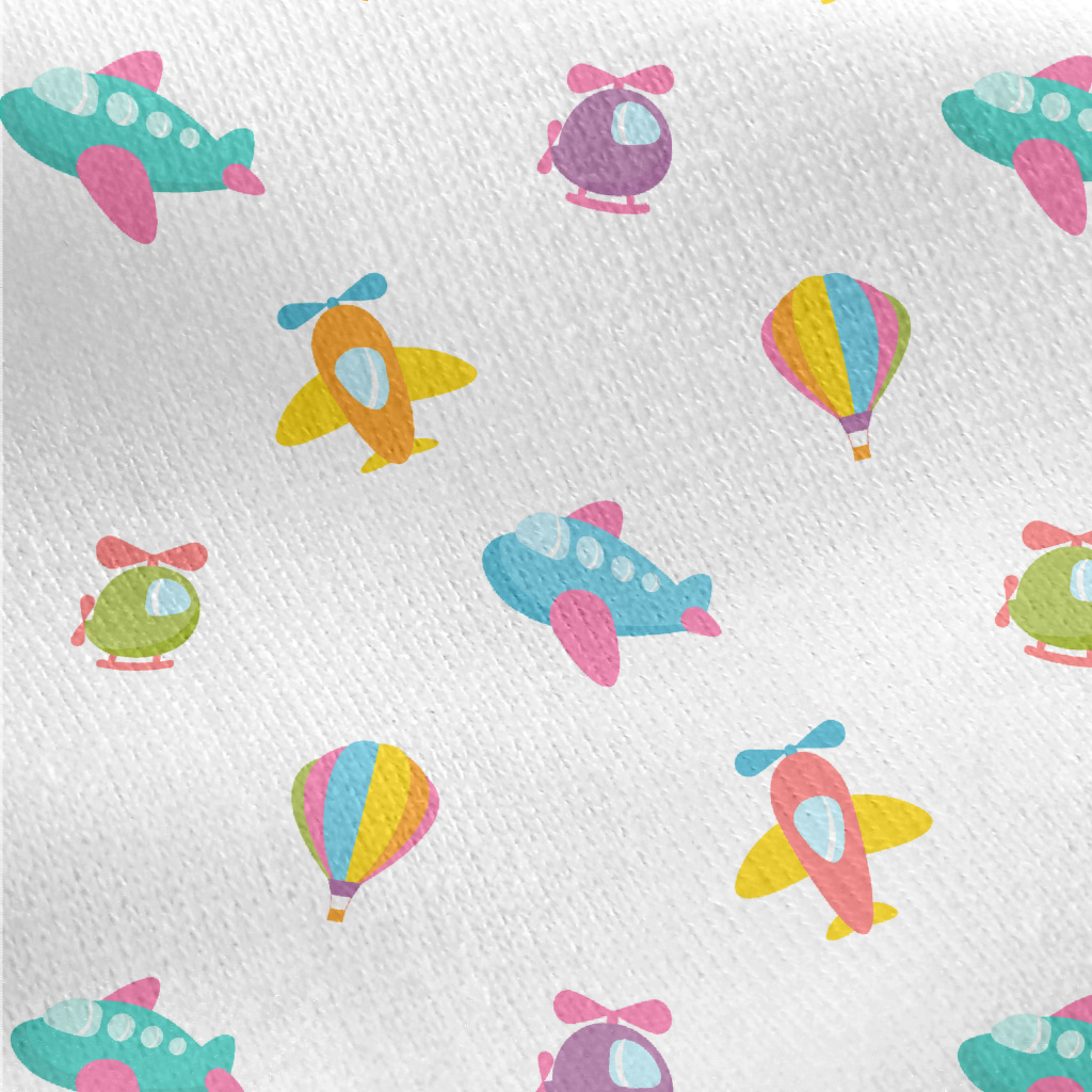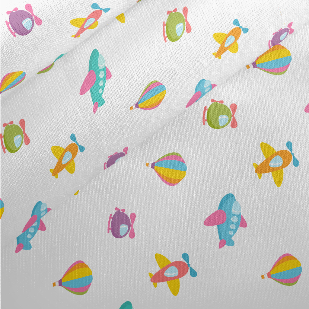 Cartoon Airplane Hot Air Ballo Jersey Backed Fleece