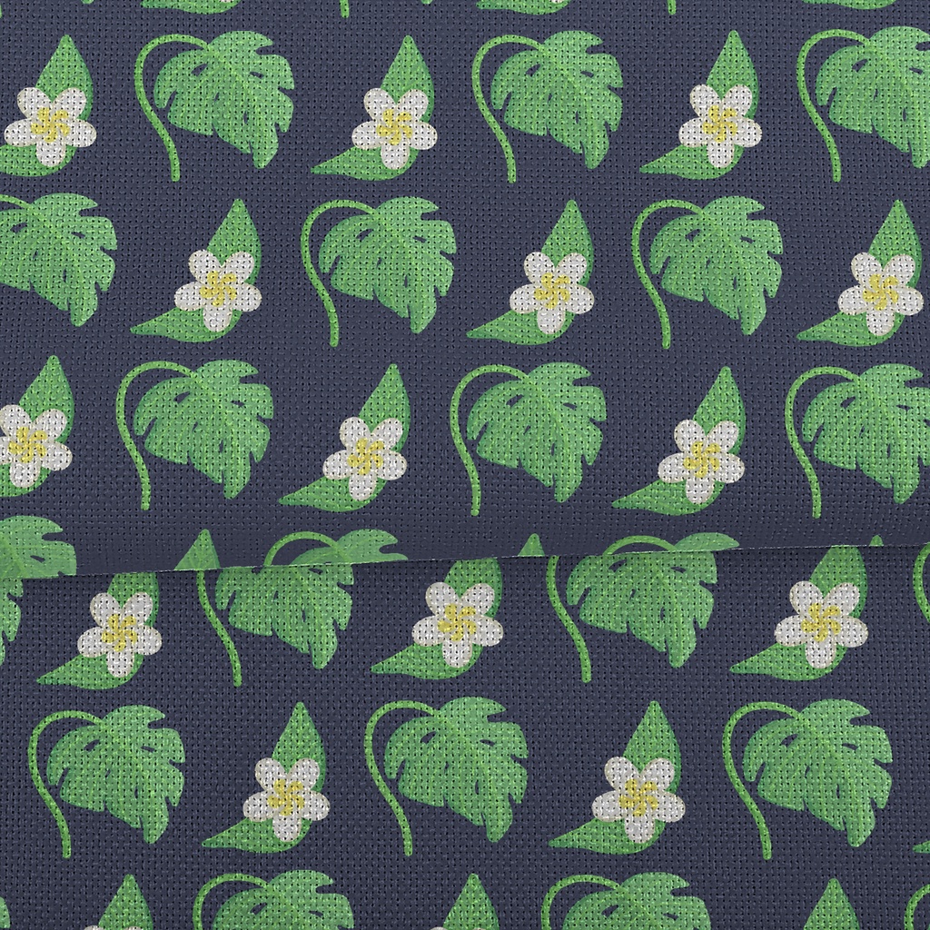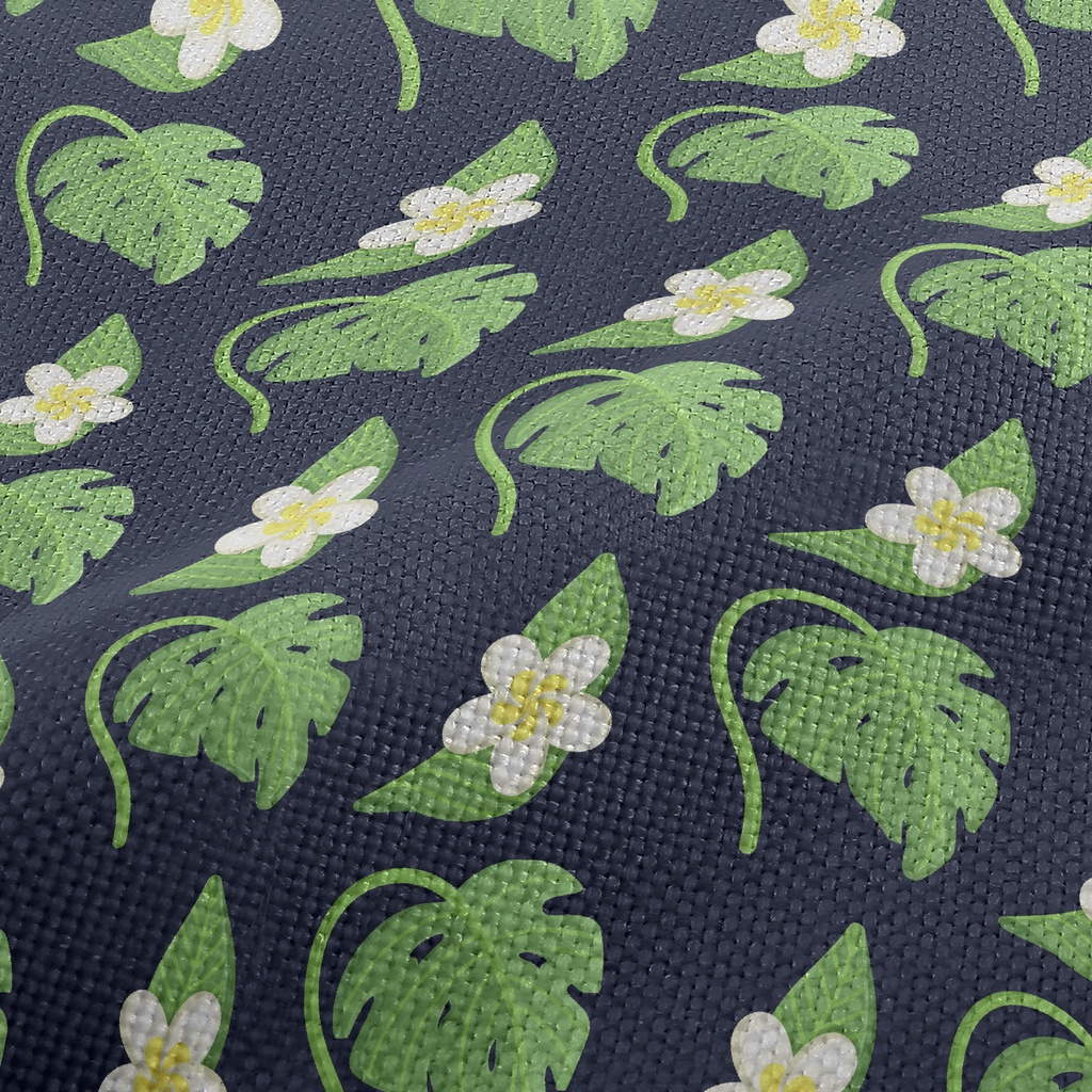 Plumeria Tropical Leaves Performance Linen