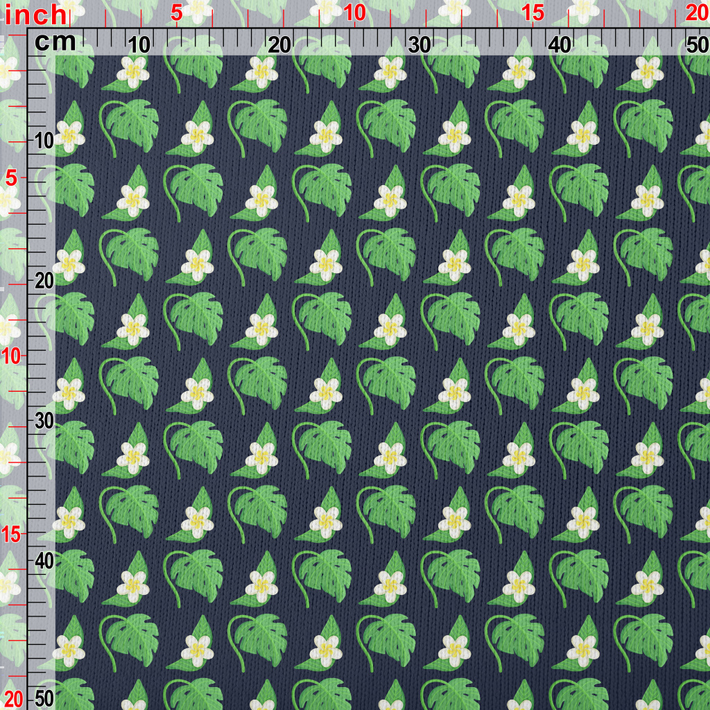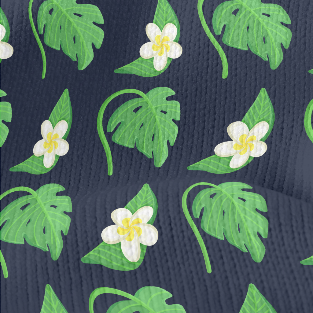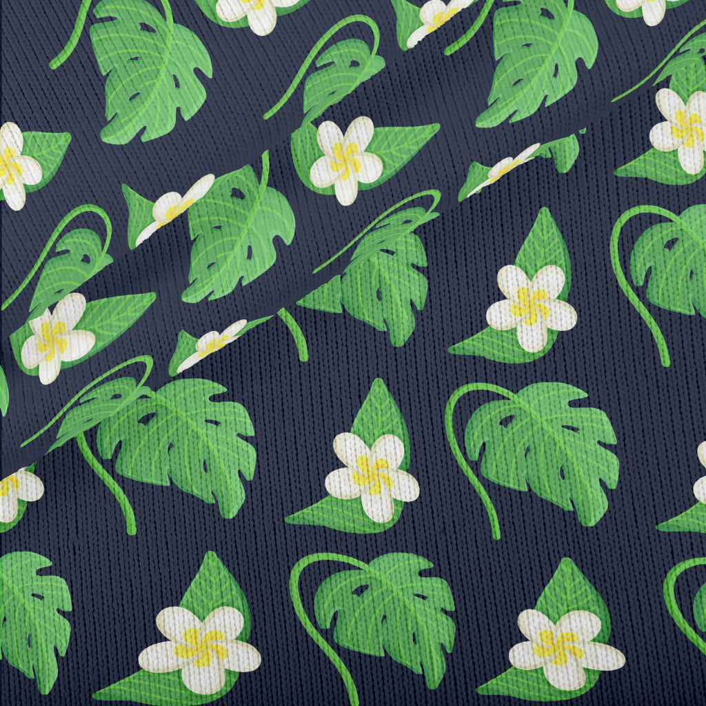 Plumeria Tropical Leaves Stretch Jersey