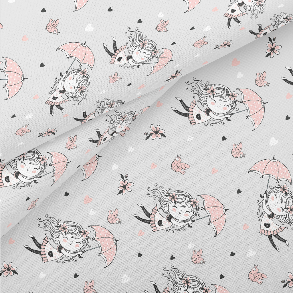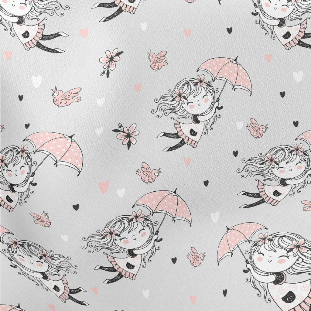 Flying Umbrella Girl Lightweight Cotton Poplin