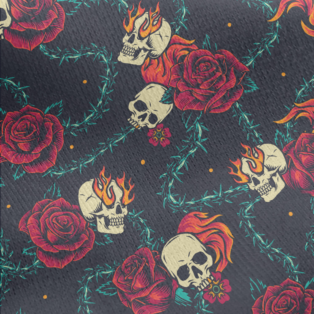 Bright Red Rose Flame Skull Jersey Backed Fleece