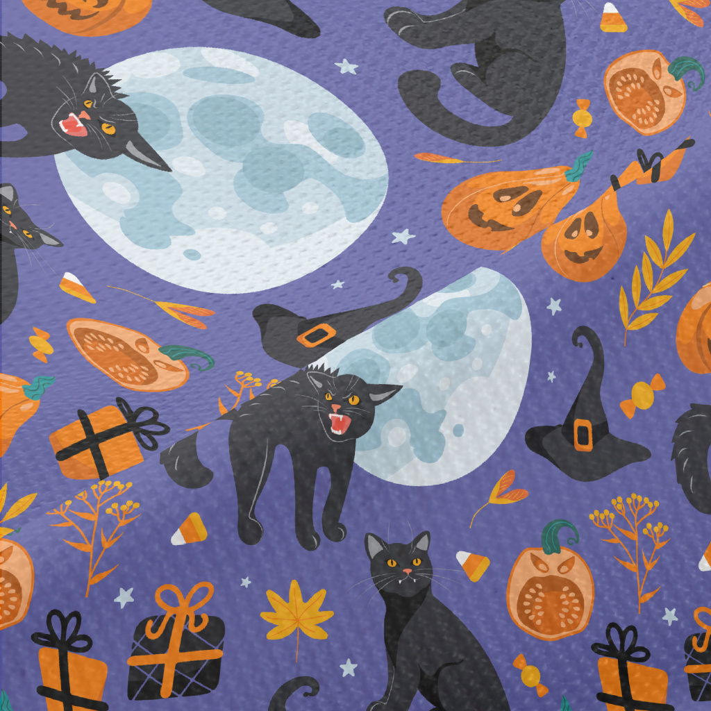 Fierce Black Cat In Witch Hat Piqué