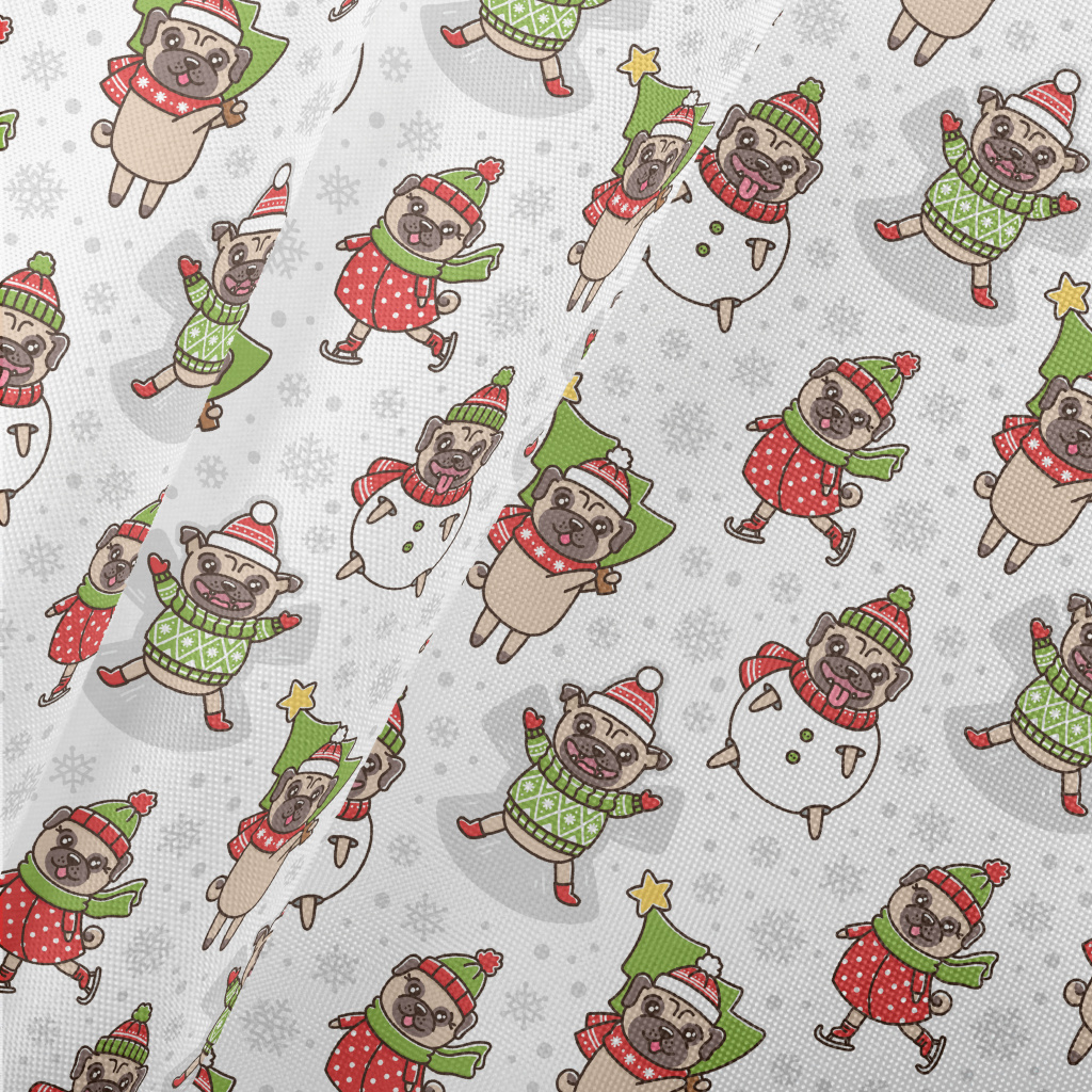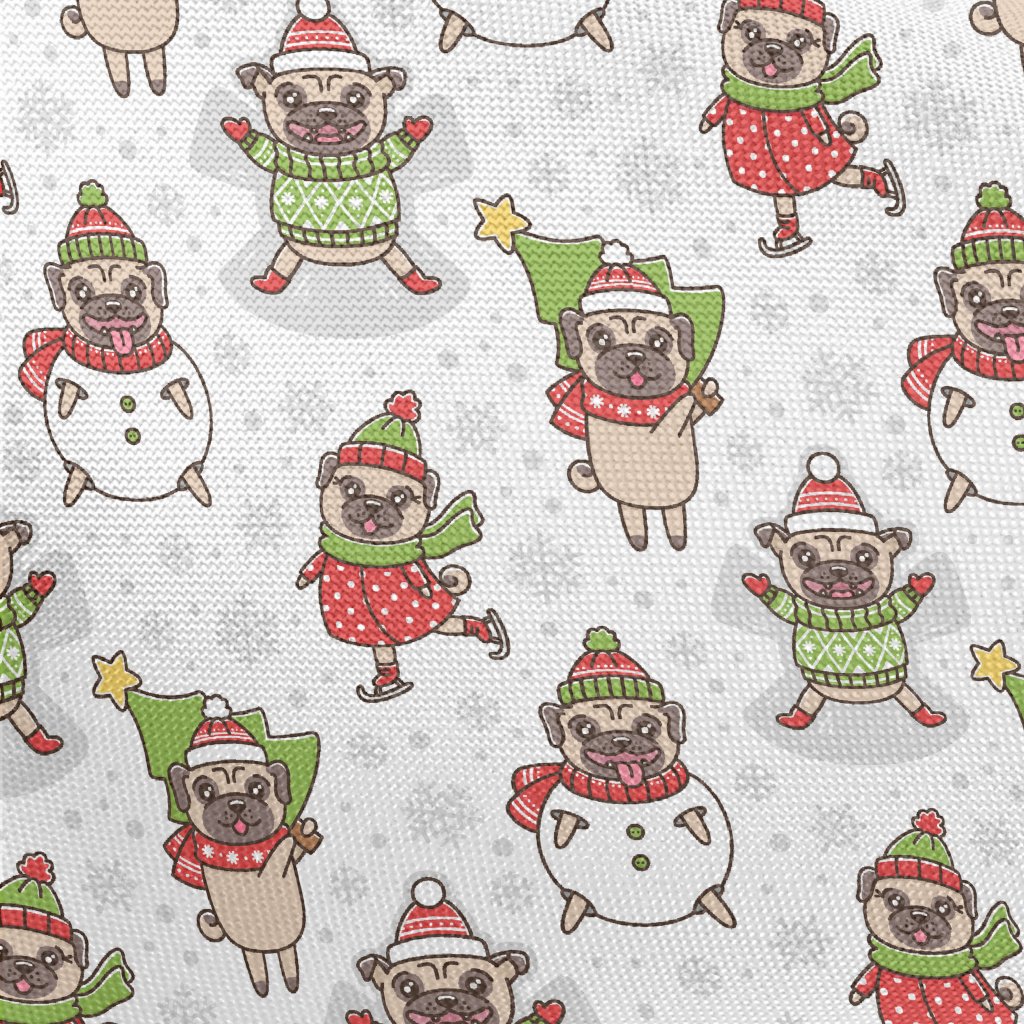 Happy Christmas Pug Pongee