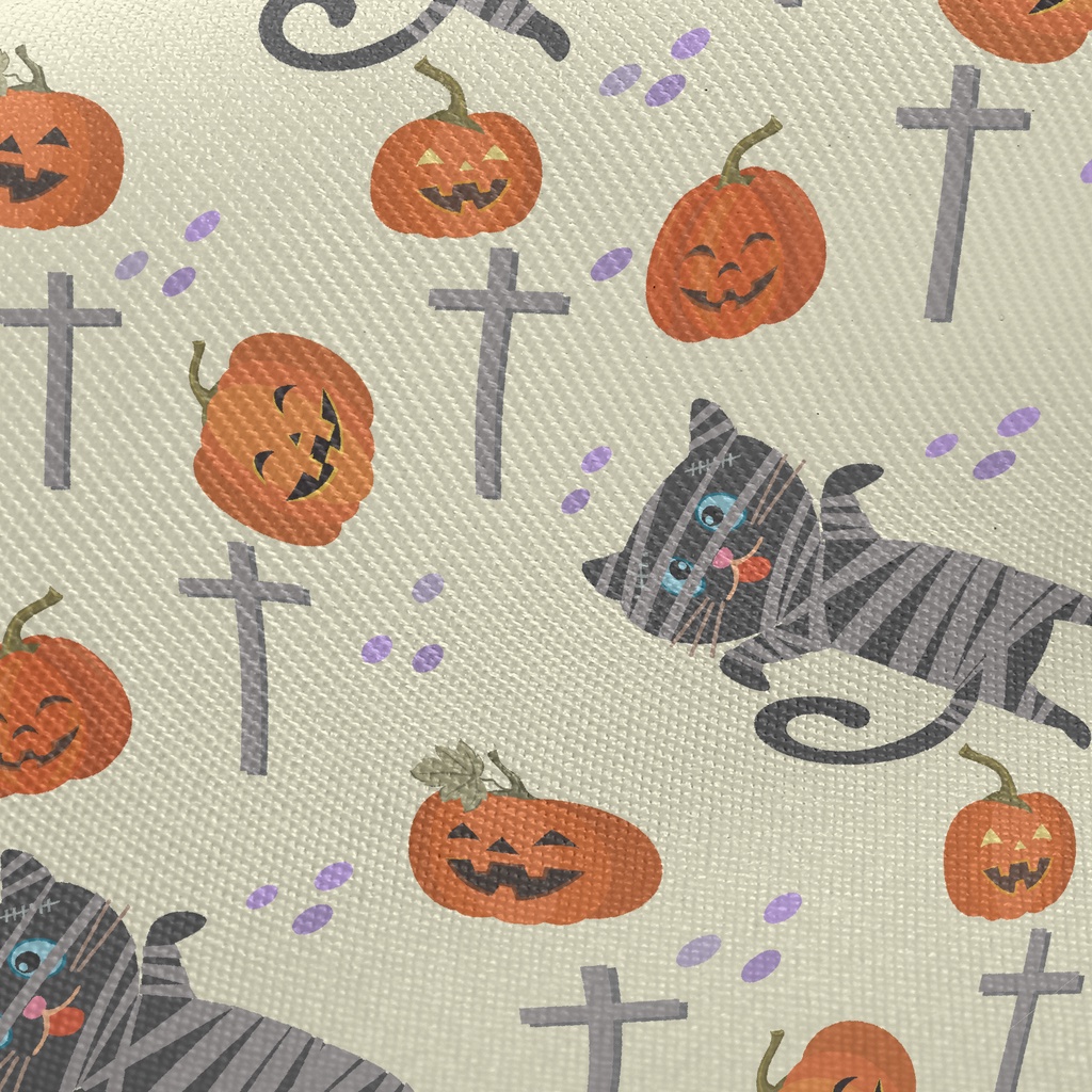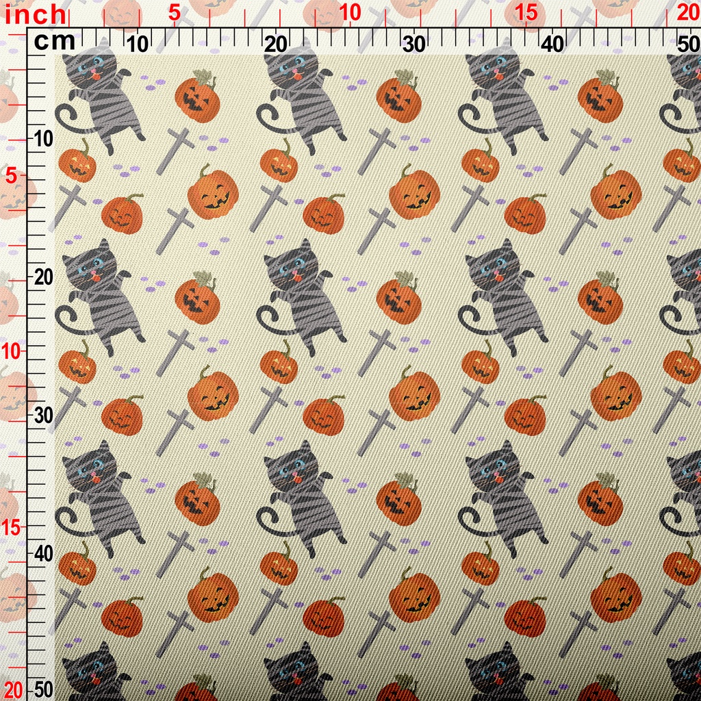 Black Cat And Halloween Pumpki Twill