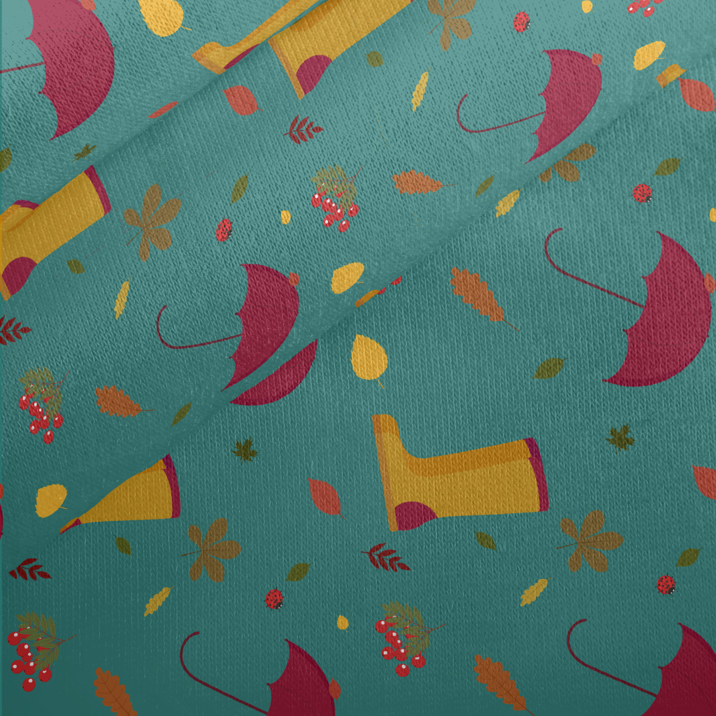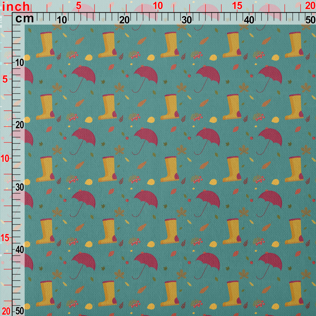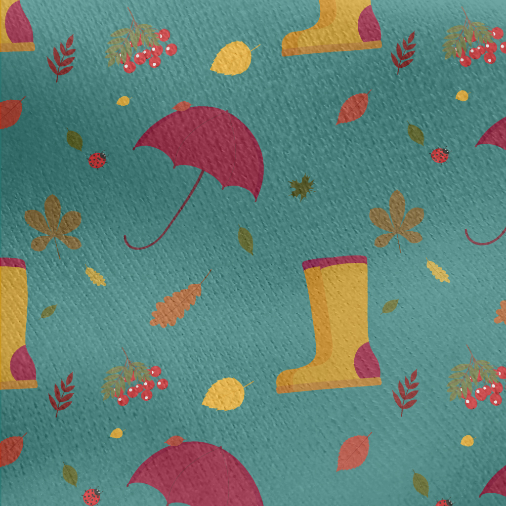 Rainy Day Umbrella Rain Boots Jersey Backed Fleece