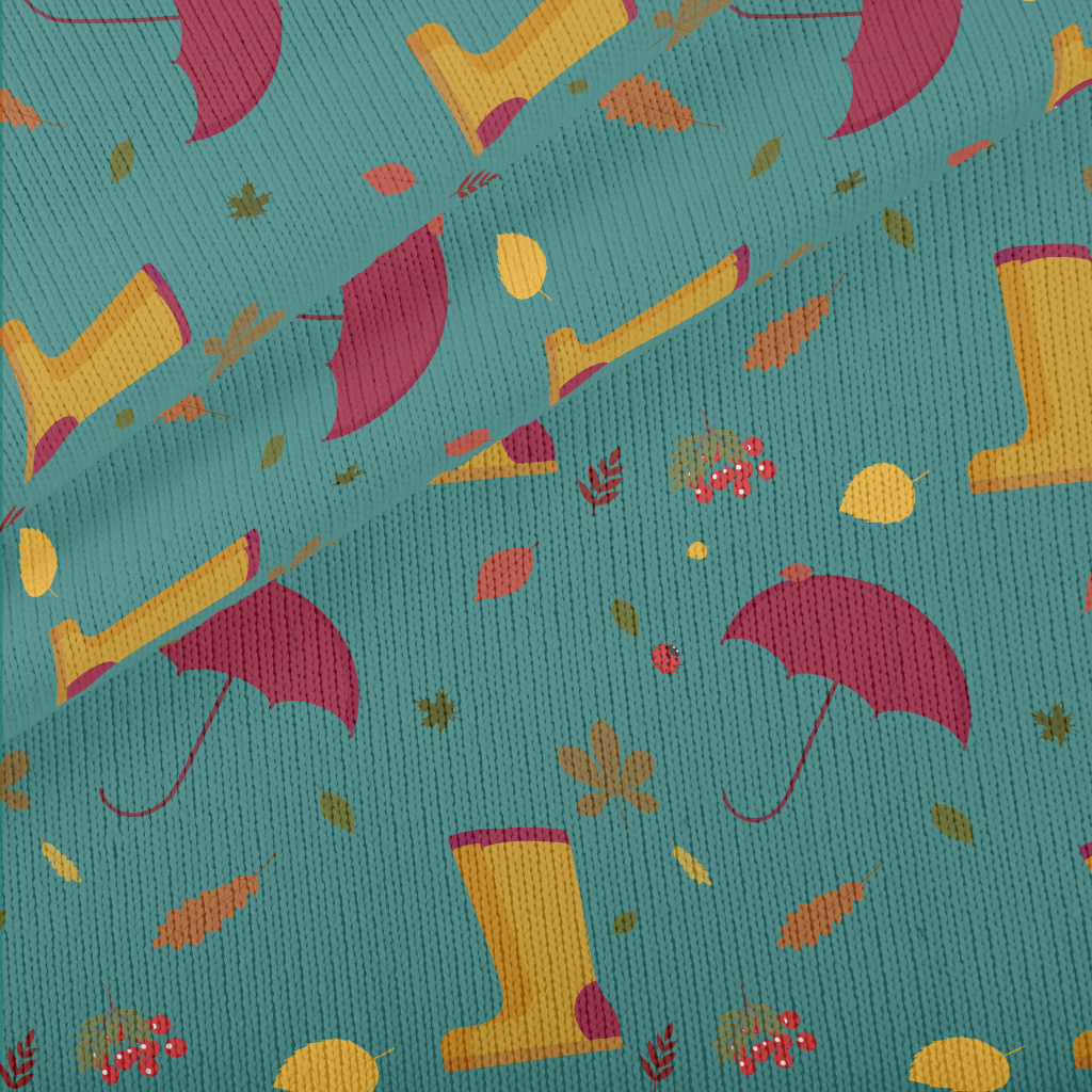 Rainy Day Umbrella Rain Boots Stretch Jersey