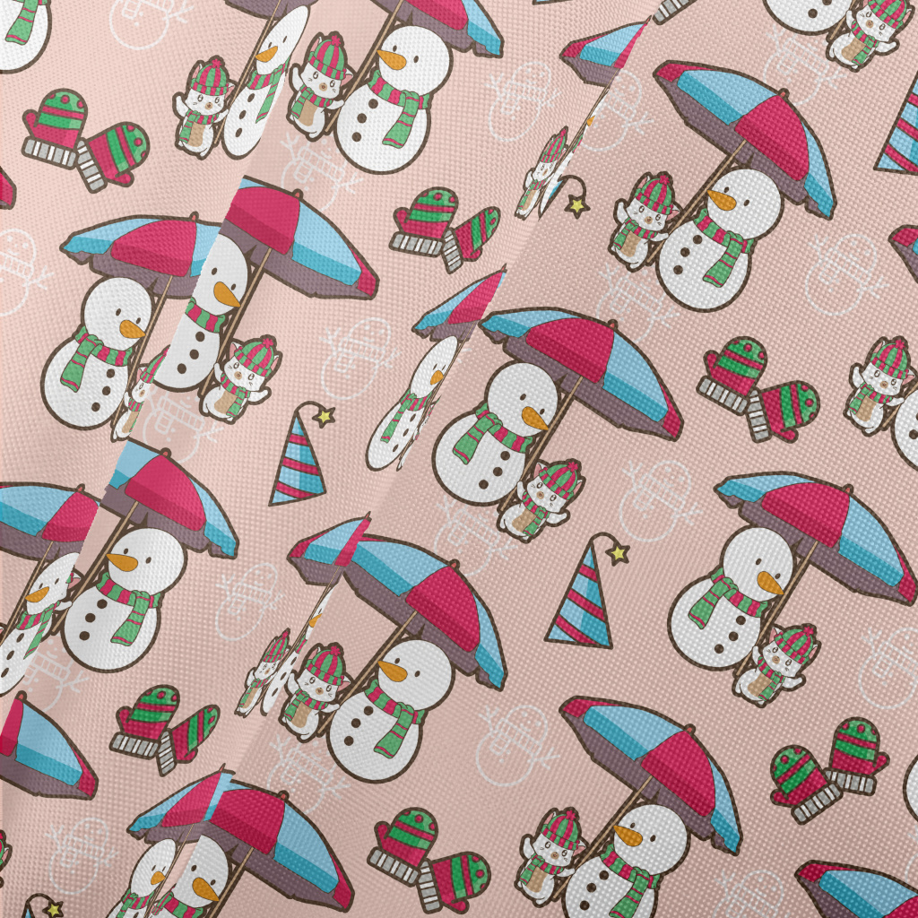 Funny Snowman And Kitten Pongee