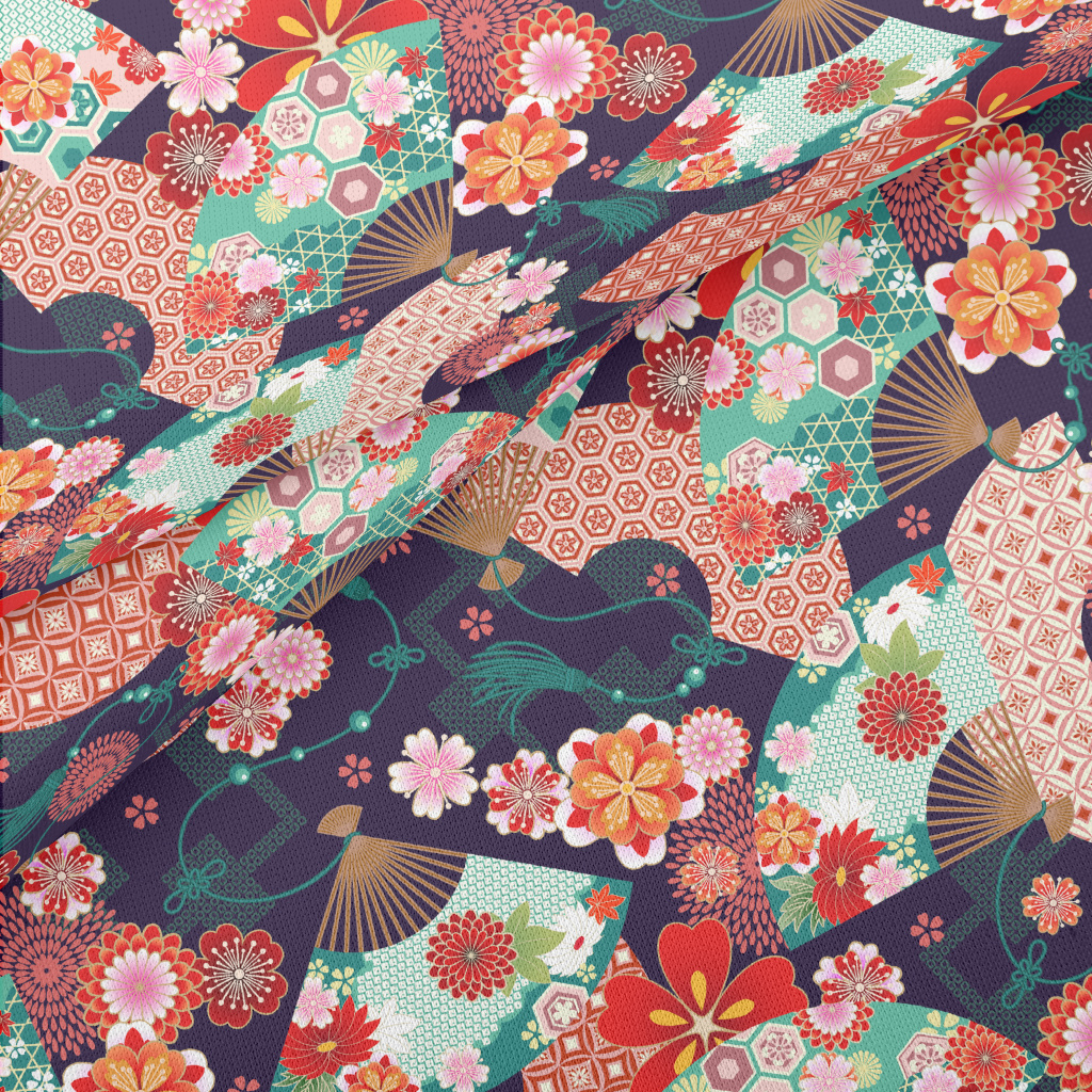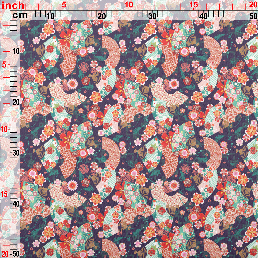 Japanese Flower Fan Lightweight Cotton Poplin