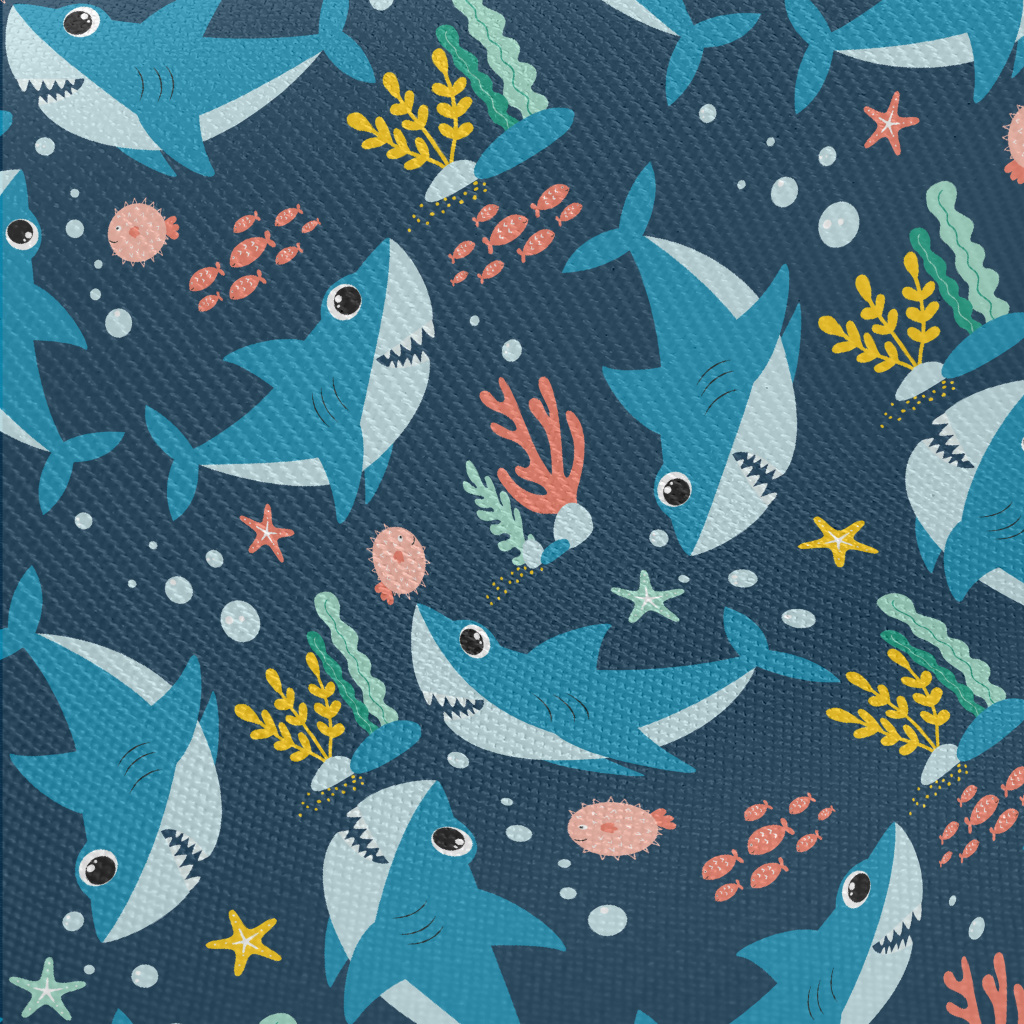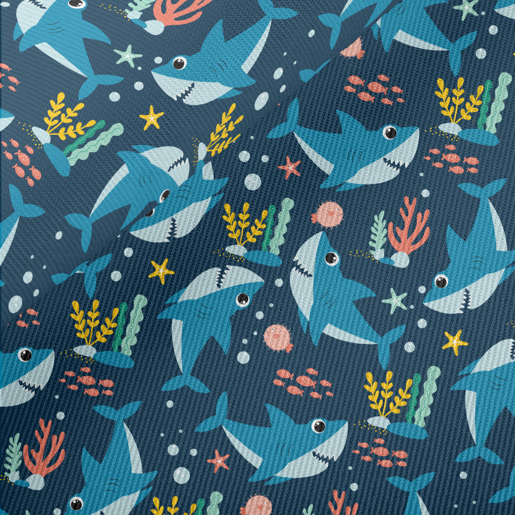 Happy Swimming Shark Midweight Cotton Poplin