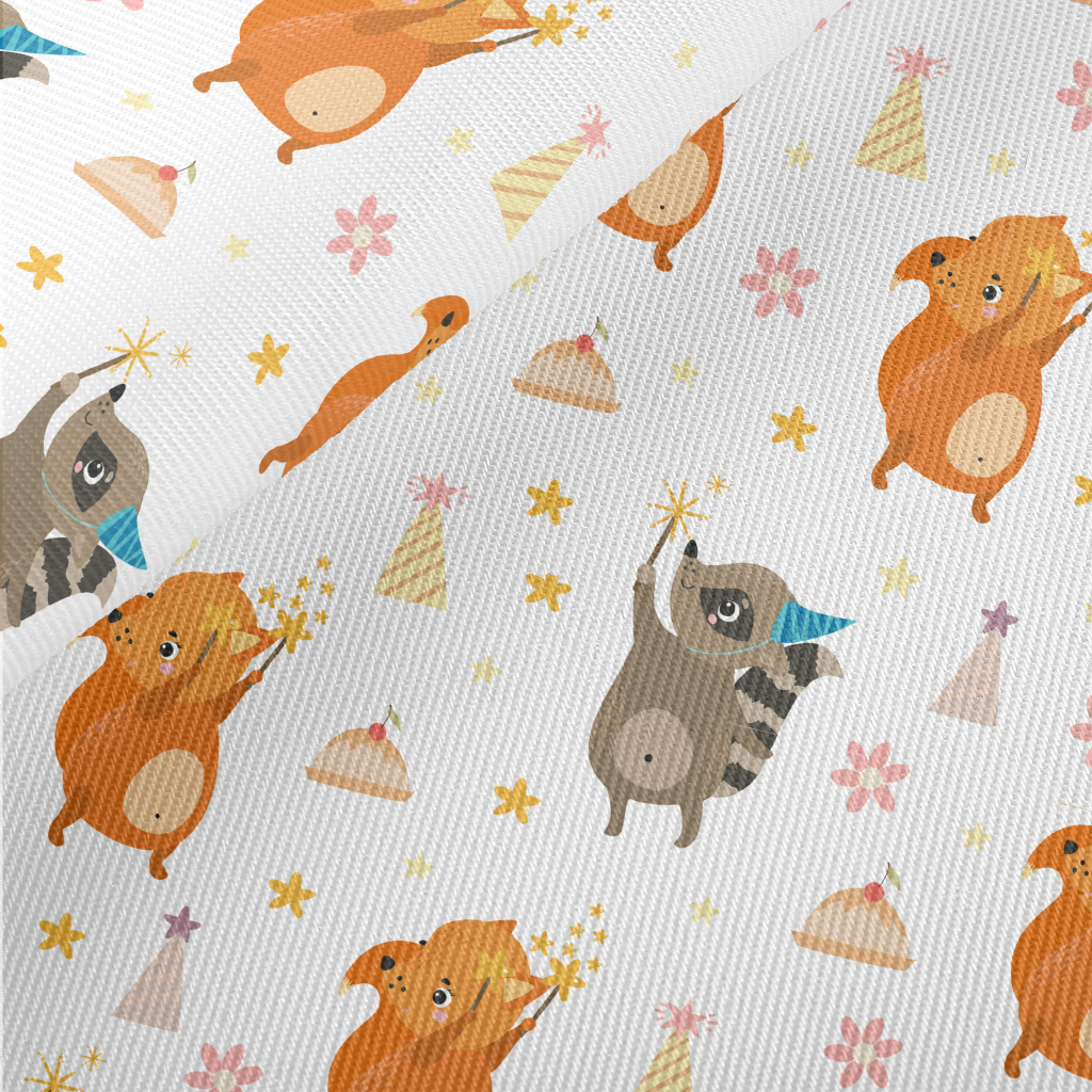 Cute Squirrel Raccoon Midweight Cotton Poplin