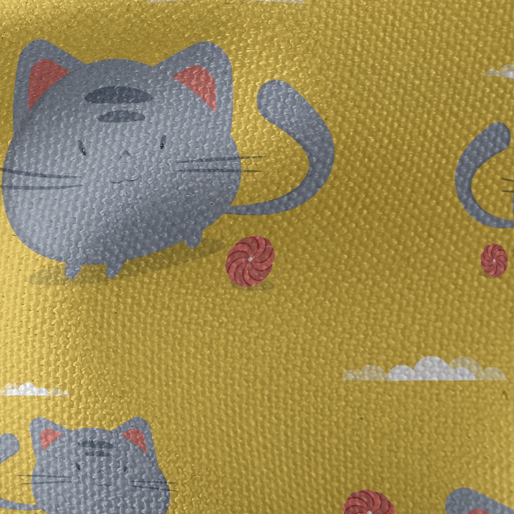 Round Cat And Yarn Ball Waterproof Canvas