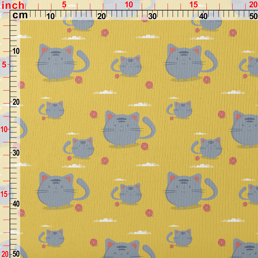 Round Cat And Yarn Ball Stretch Jersey