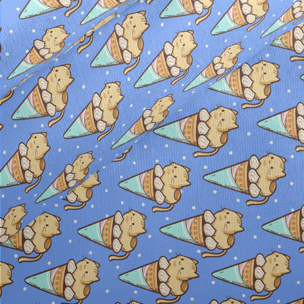 Popsicle Cone And Kitten Jersey Backed Fleece