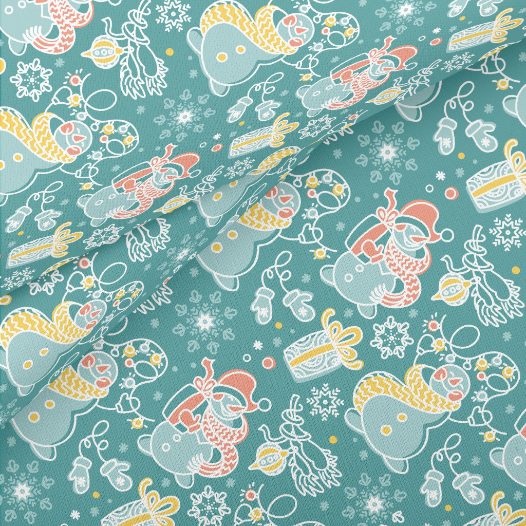 Happy Line Snowman Lightweight Cotton Poplin