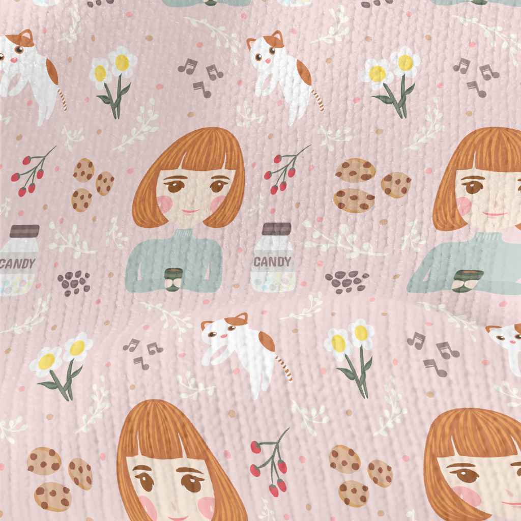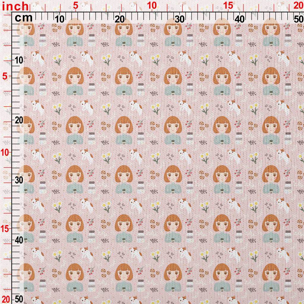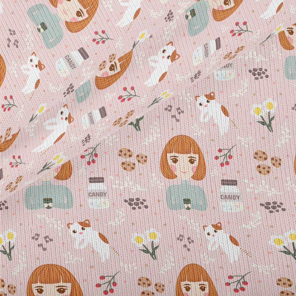 Girl And Kitten Afternoon Tea Stretch Jersey
