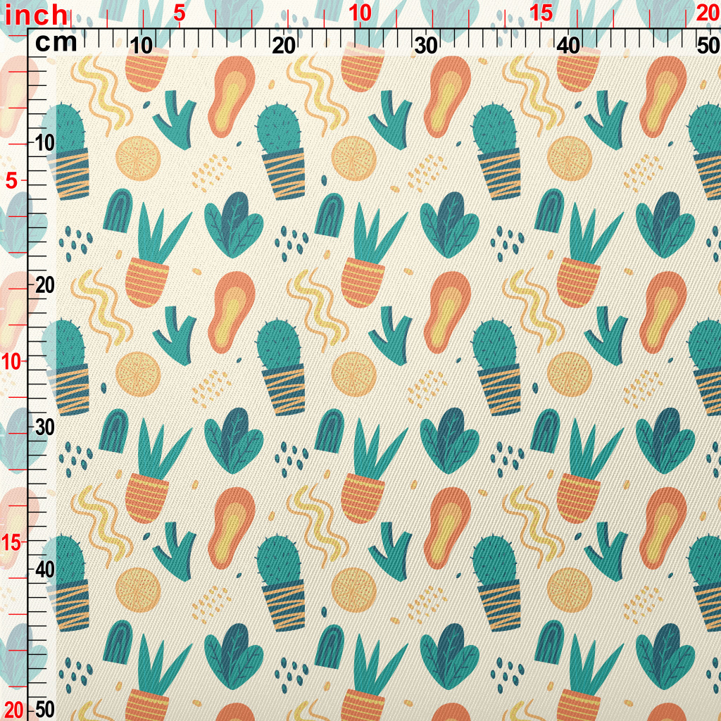 Cactus Succulent Potted Plants Midweight Cotton Poplin