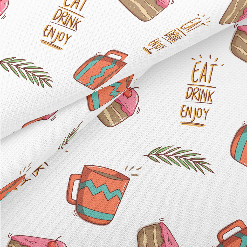 Cherry Cake With Hot Tea Lightweight Cotton Poplin
