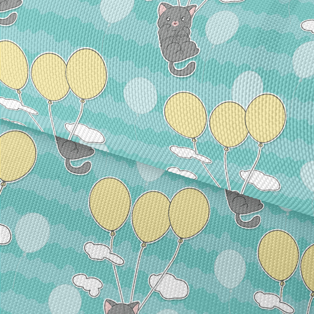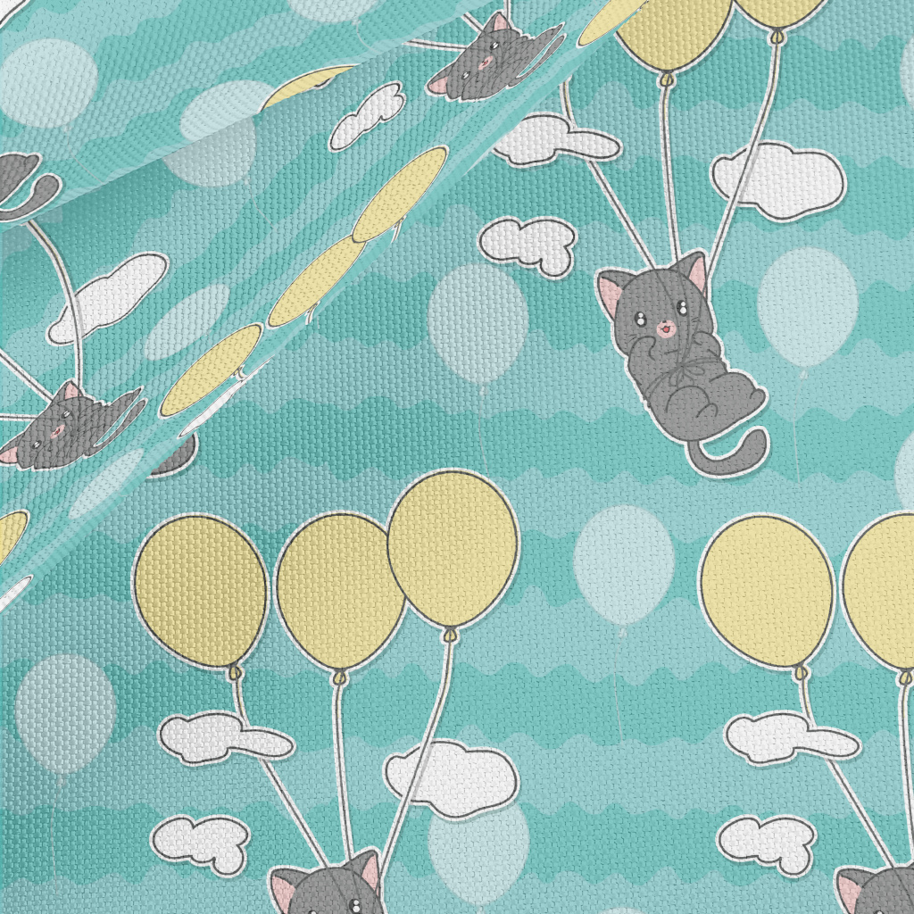 Little Gray Cat Loves Balloons Waterproof Oxford