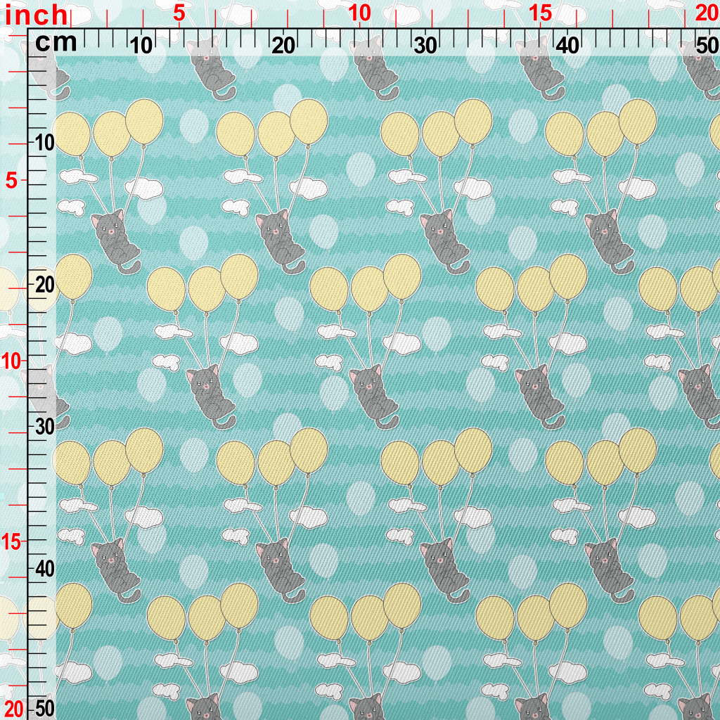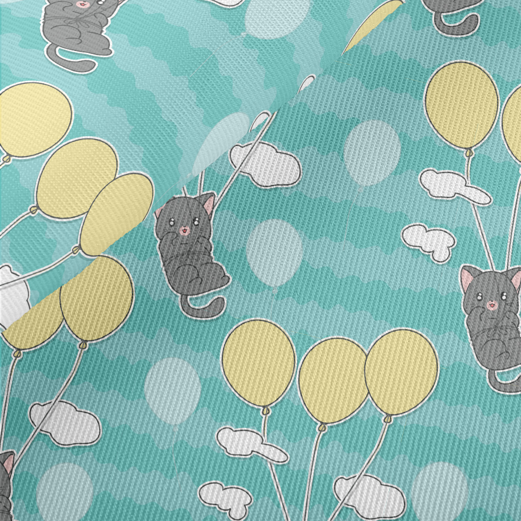 Little Gray Cat Loves Balloons Midweight Cotton Poplin